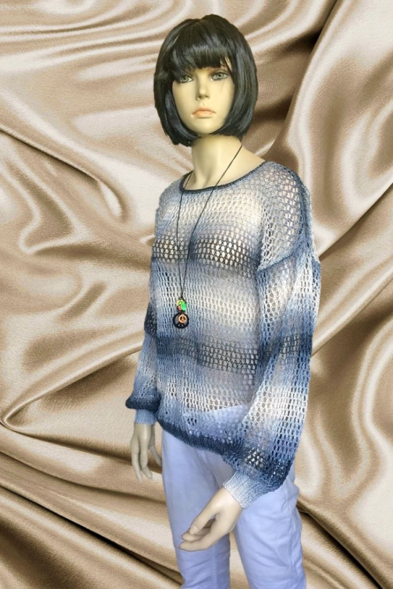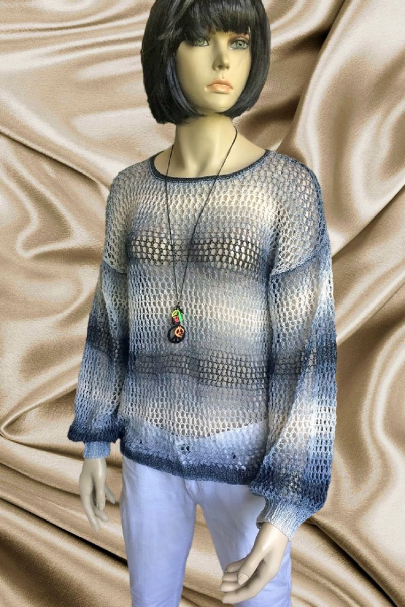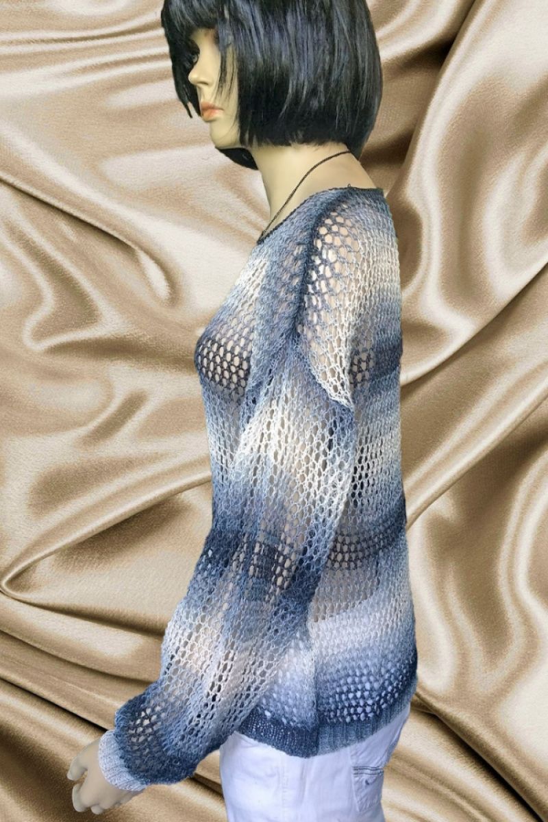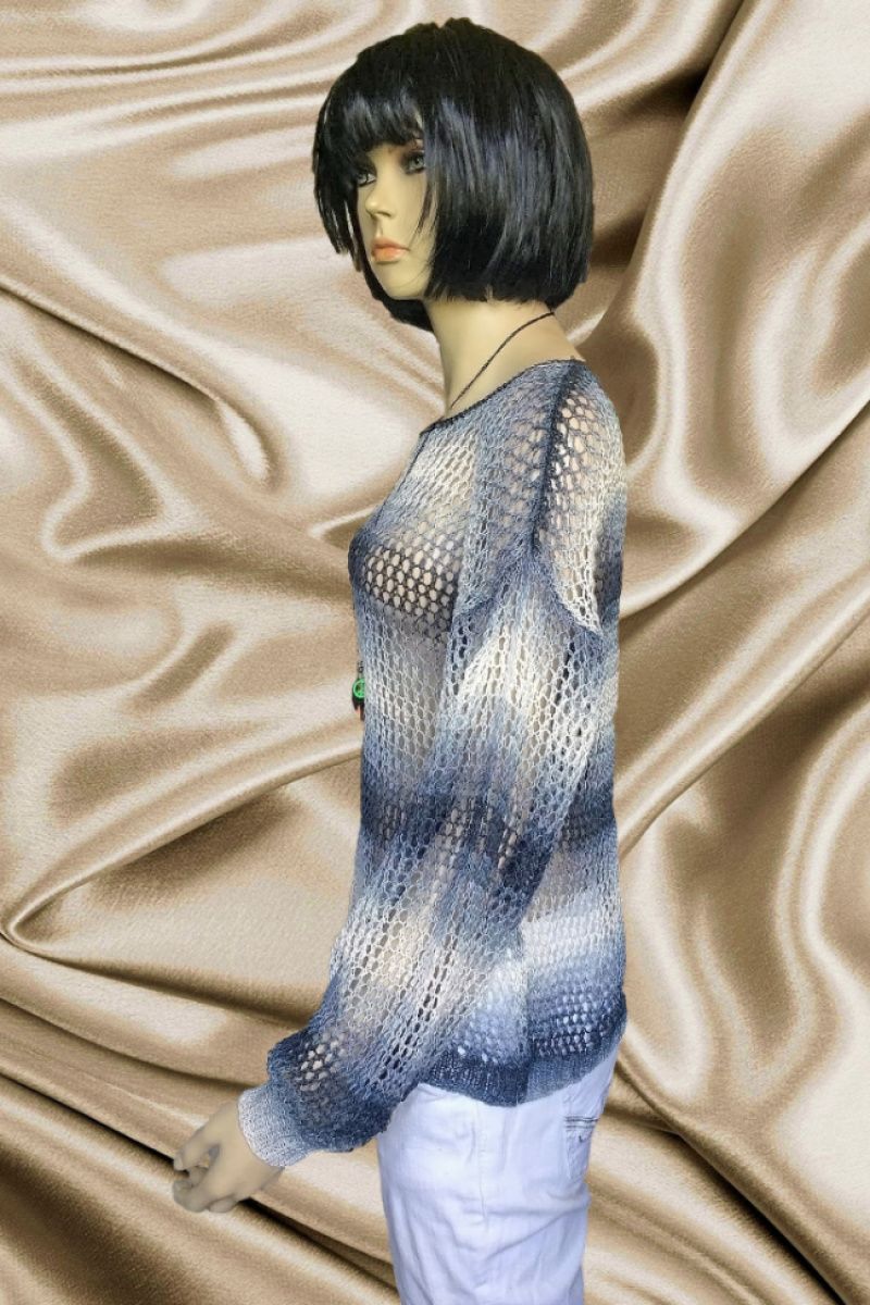 Жіноча смугаста вільна кофта-оверсайз для весни і для літа. Виконана з 100% бавовни секційного фарбування. Відмінно подходет для літніх вечорів і для теплих весняних днів