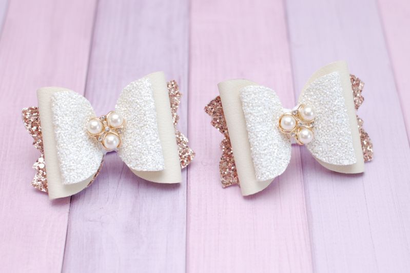 Модні бантики виконані з різних видів екокожі, красиво переливаються. Декоровані красивою стразового серединкою. Основа - гумки.