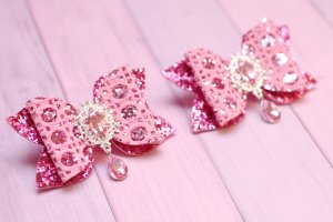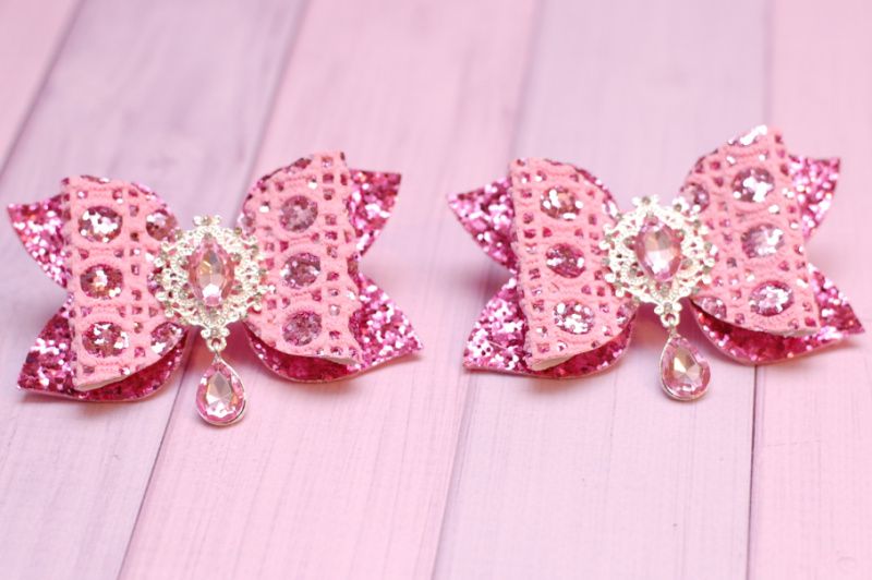 Модні бантики виконані з блискучою екокожі. Декоровані красивою стразового серединкою. Основа - гумки.