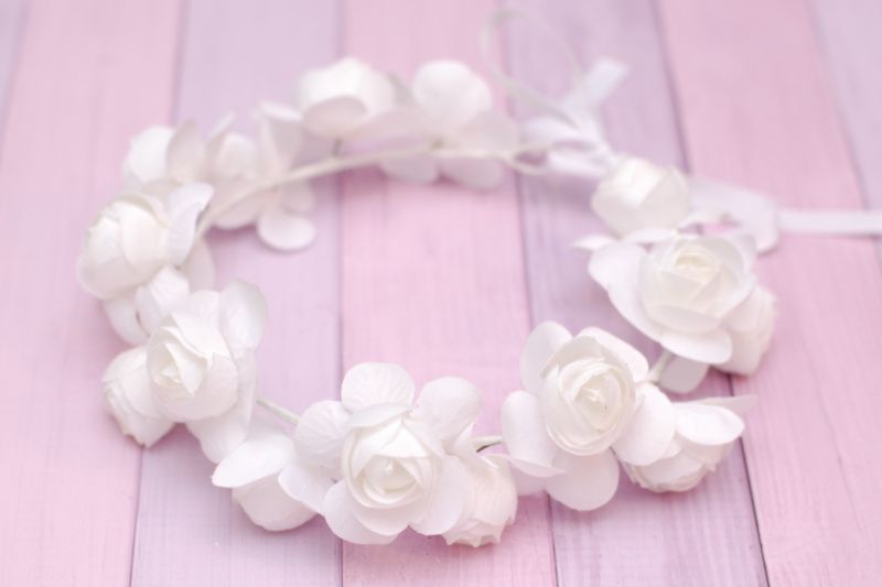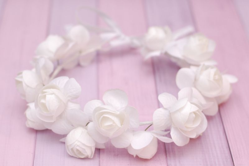 Дуже ніжний і красивий віночок доповнить Ваш весільний або святковий образ.Виполнен на дротяної основі, підходить як діткам, так і дорослим