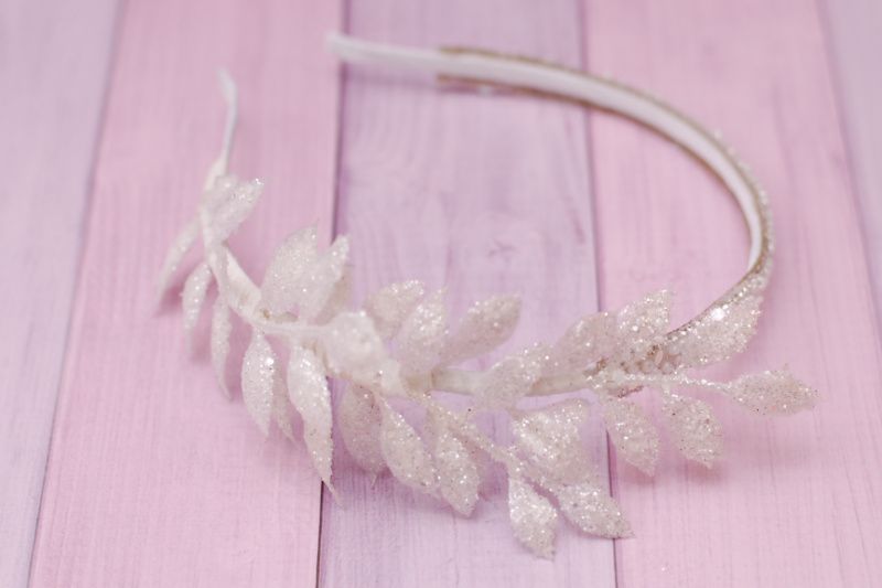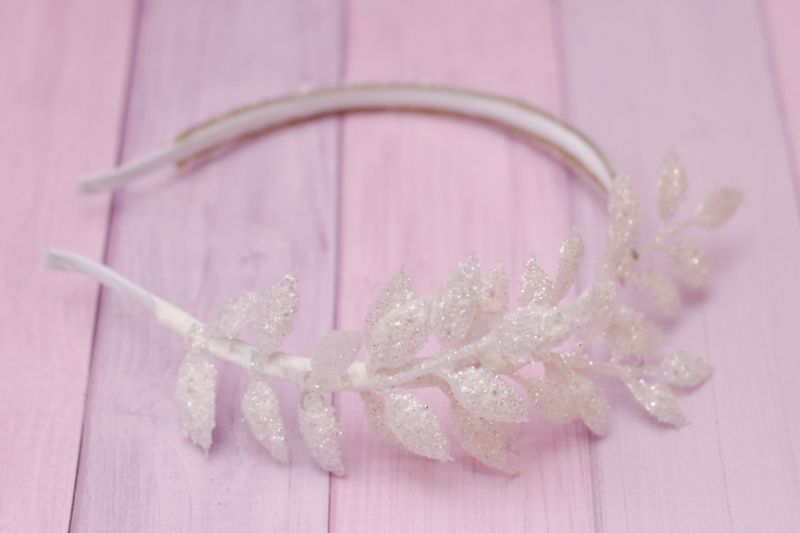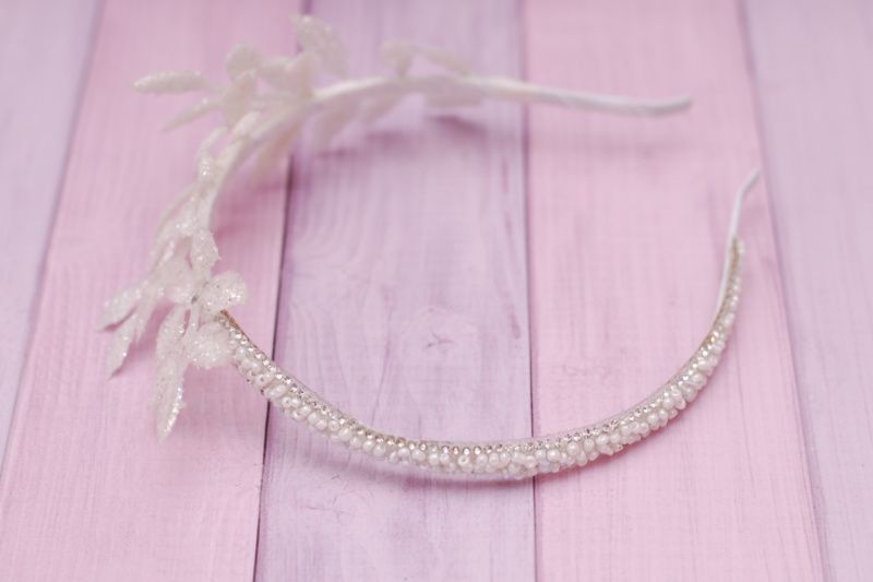 Стильний обідок виконаний на металевій основі, декорований білими листочками та стразами. Підійде практично під будь-яке вбрання на святкові заходи
