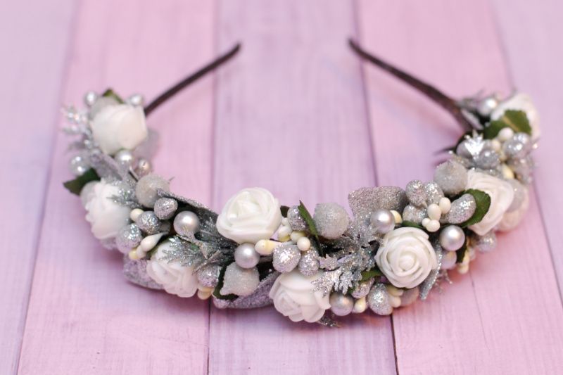 Обідок - ошатний аксесуар для фотосесії, свята або будь-якого іншого свята. Блискучі елементи створюють святковий настрій і чудово впишуться у новорічні урочистості.