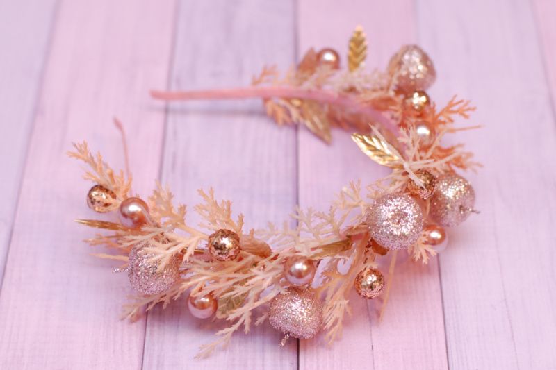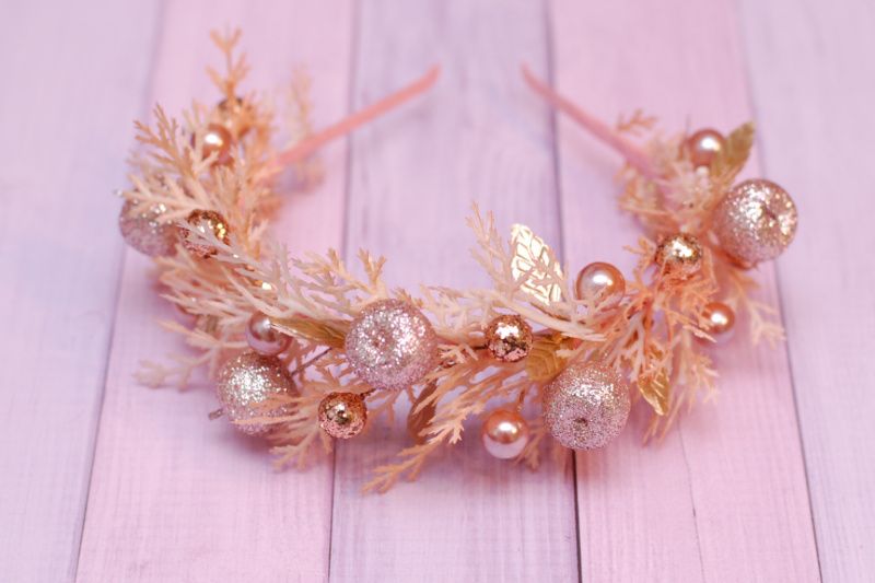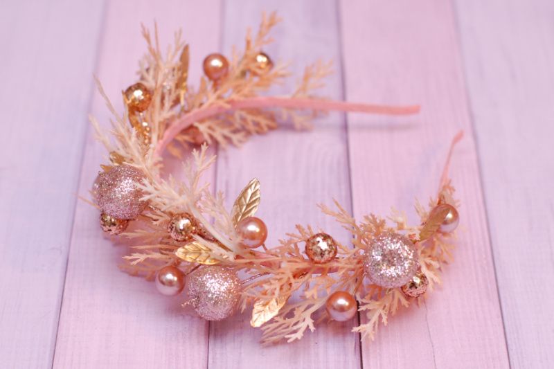 Новорічний обруч обідок у кольорі рожеве золото.