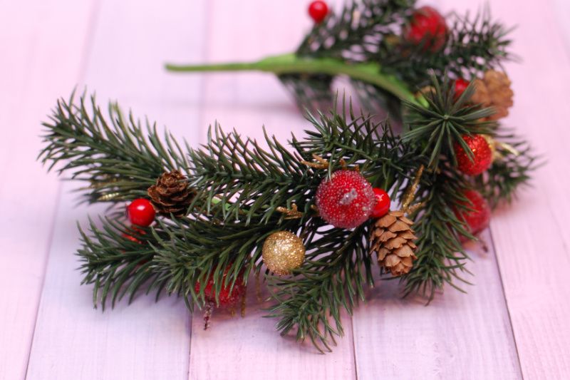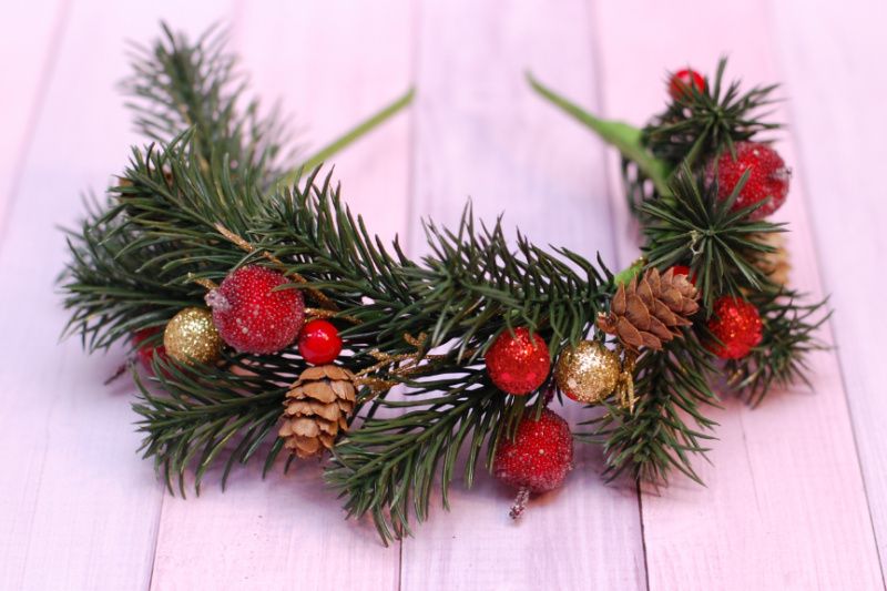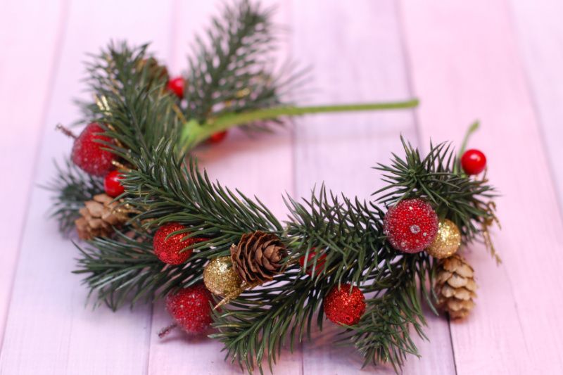 Новорічний обідок виконаний у червоному золотому кольорі з гілочками ялинки. Виріб доповнить Ваше вбрання у новорічні та Різдвяні свята, прикрасить зимову фотосесію. Ідеальний варіант для дитини на Новорічне свято. Усі елементи композиції надійно закріплені на металевому обідку.