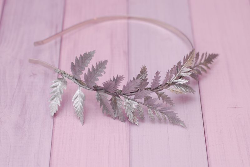 Обруч обідок із сріблястими листочками