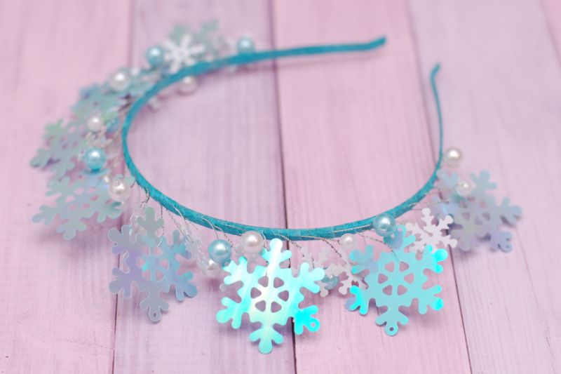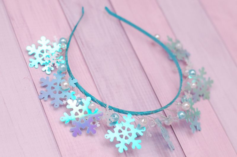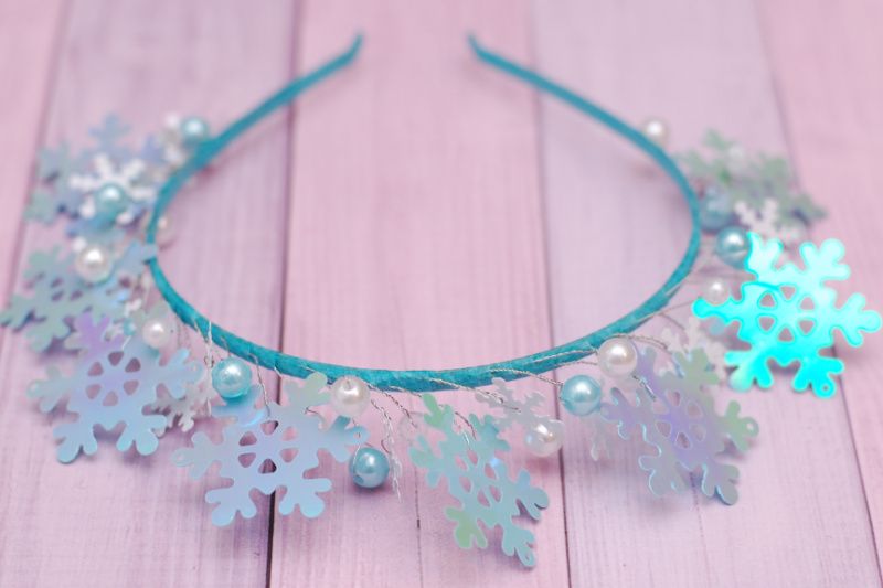 Новорічний, ніжний обідок для образу сніжинки або Снігуроньки з намистинами та сніжинками! В основі виробу металевий обруч 0.5 см. У роботі використано мідний дріт 0.3 см, до якого кріпляться намистини та сніжинки (білі та блакитні). Кожна намистина та сніжинка прикріплена вручну! Обідок підходить на будь-який об'єм голови!