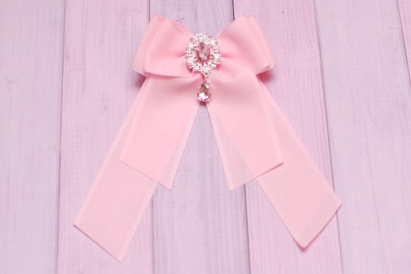 Шпилька з трендовим бантом з подовженими кінцями виконана в білому кольорі. Бантик декорований стразового серединкою. Основа - затиск. Розміри банта 10,5 * 17 см