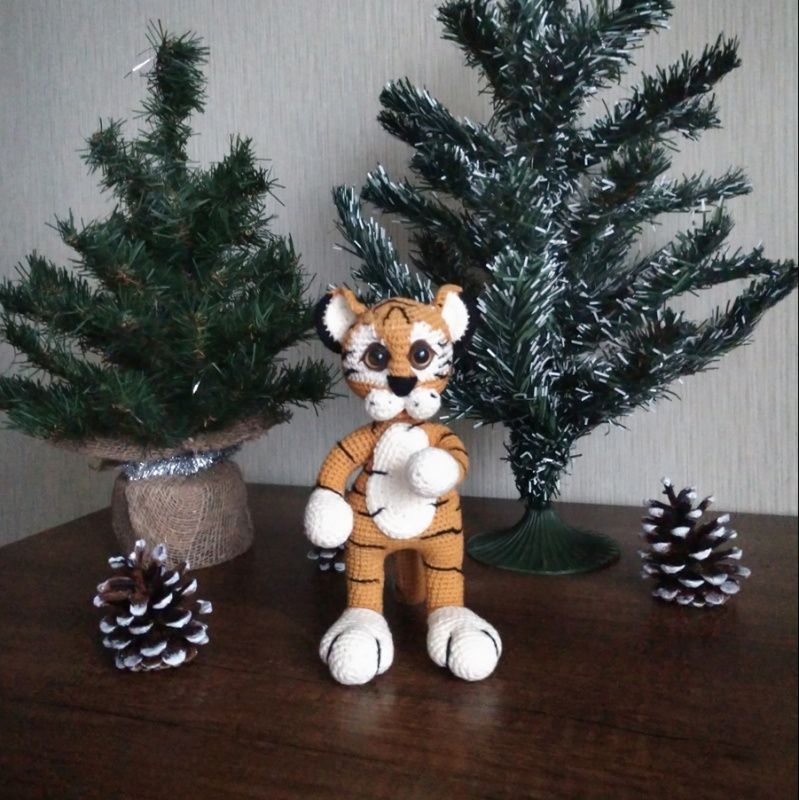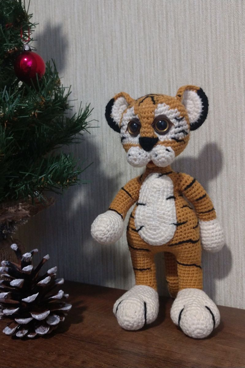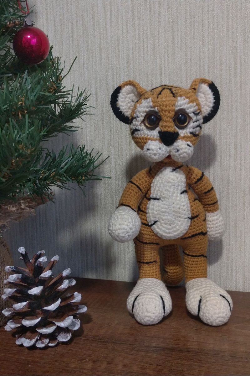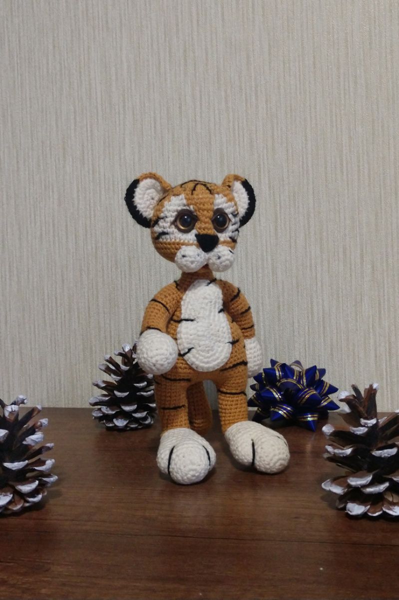 Як це здорово, коли проста ниточка в твоїх руках перетворюється на живу істоту! Так, саме живе! Вони дивляться на тебе, посміхаються або хмурять брівки. Їхній настрій у твоїх руках. У твоїх руках зробити щасливою дитину, яка чекає на свою іграшку і буде любити її всім серцем? Тигр .. Розмір 20 см, з бавовняної пряжі ALIZE Cotton Gold. Наповнювач -холофайбер