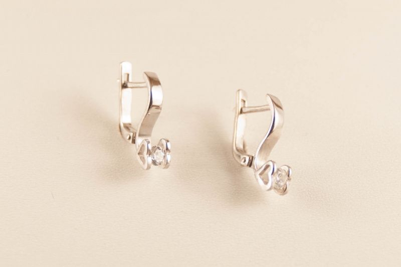 Сережки власного виробництва зі срібла 925 проби зі вставками з цирконію.
