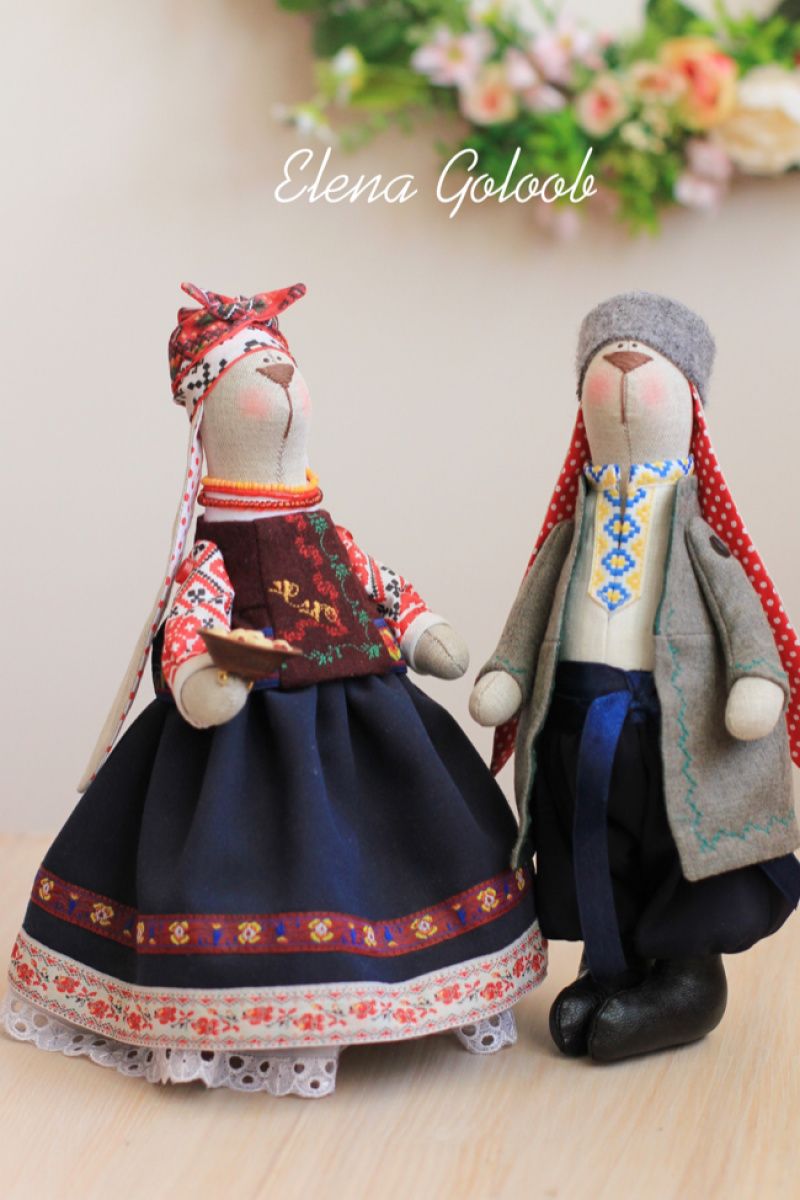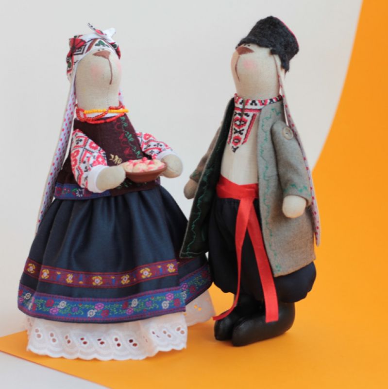 Пара зайців у національних костюмах і смаколиками -як символ єднання і вдячністю до тих, хто допомагав