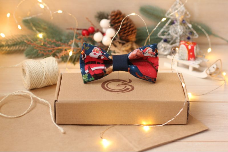 Бабочки из ярких тканей с новогодней тематикой сделают Ваш образ по-настоящему праздничным и незабываемым