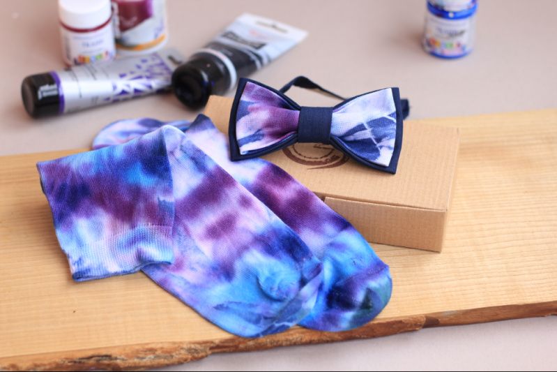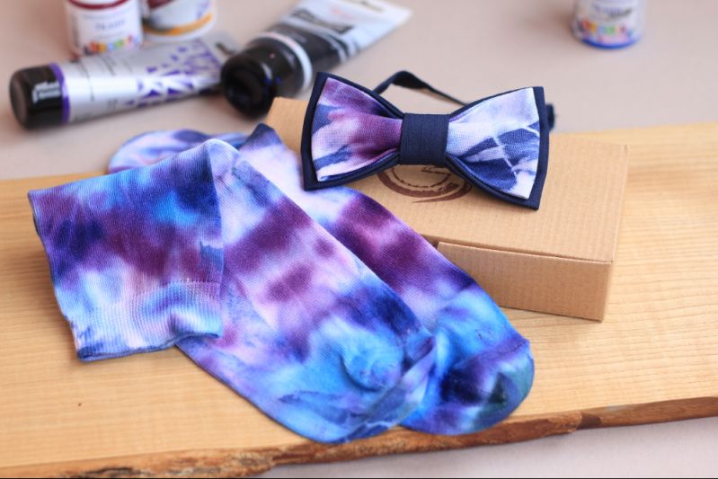 А мы предлагаем комплект -носки и бабочку, окрашенные в такой технике