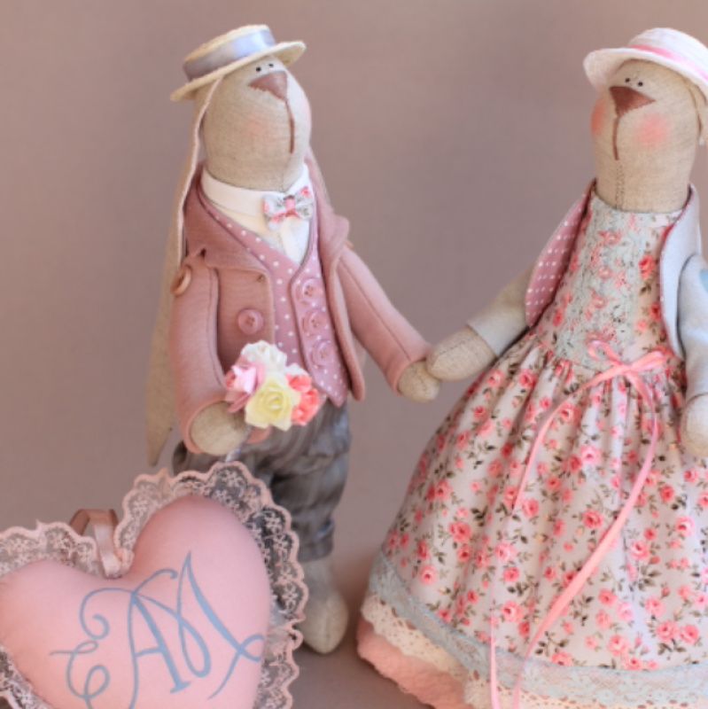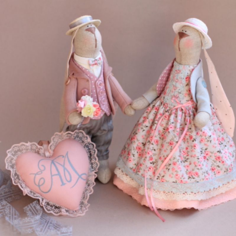 Поэтому, перед тем , как заказывать какую- либо вещь ручной работы, будьте готовы к тому, что она может отличаться от картинки. Цветовое решение и понравившийся образ будут сохранены, но пара будет другая – именно ваша, со своим характером и особенностями (даже в том случае, когда ткани будут использованы те же, что и для создания Зайчиков на фото)