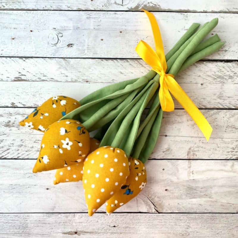 Букет текстильних тюльпанів, чудовий подарунок на день матері. Такі тюльпани будуть стояти вічно та круто вписуватися у інтер‘єр і кожен день радувати.
