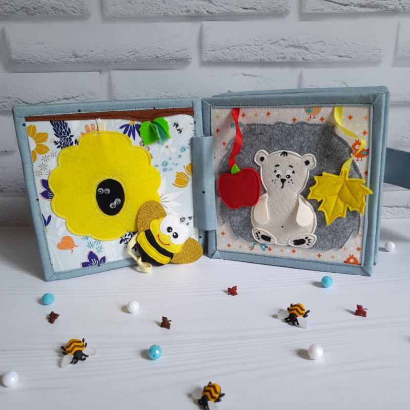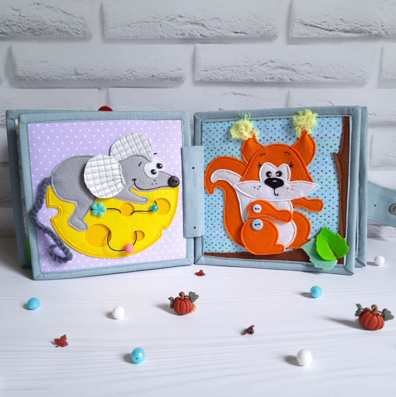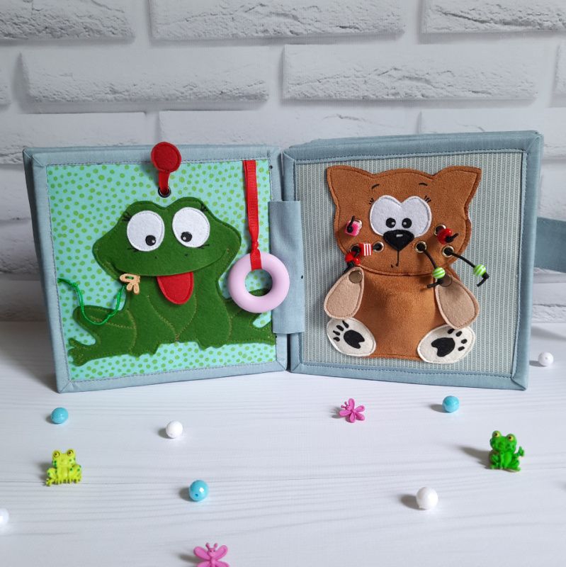 Розвиваюча книжка з тканини і фетру для самих маленьких. Тактильна книжка для розвитку дрібної моторики. Ця книга просто ТОП продажів вже кілька років поспіль)) В наявності! Розмір: 16х16см Для самих маленьких, малюкам від 3 місяців. 10 ігрових тактильних сторінок (5 розворотів) Це 10 милих і веселих тварин які викличуть посмішку на обличчі вашого малюка. :) Книга наповнена великою кількістю різних на дотик тканинами і елементами, різних форм намистинами і гудзиками. Інтуїтивно зрозумілі і легкі для малюка завдання. Малюк розвивається і вчиться граючи! Всі знімні елементи прикріплені до сторінок щільним шнурочком, тому можна не бояться що деталі впадуть на підлогу де небудь в дорозі або на прогулянці і загубляться або забрудняться. Натискайте зараз кнопку "Купити" вводите дані для доставки і я відправлю вам цю книжечку вже сьогодні-завтра! :) Також запрошую вас подивитися і інші мої роботи в моєму магазині) Якщо у вас є будь-які питання, пишіть не соромтеся, я рада допомогти і відповісти 24/7.