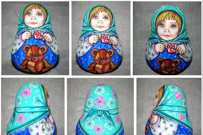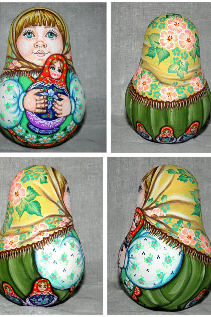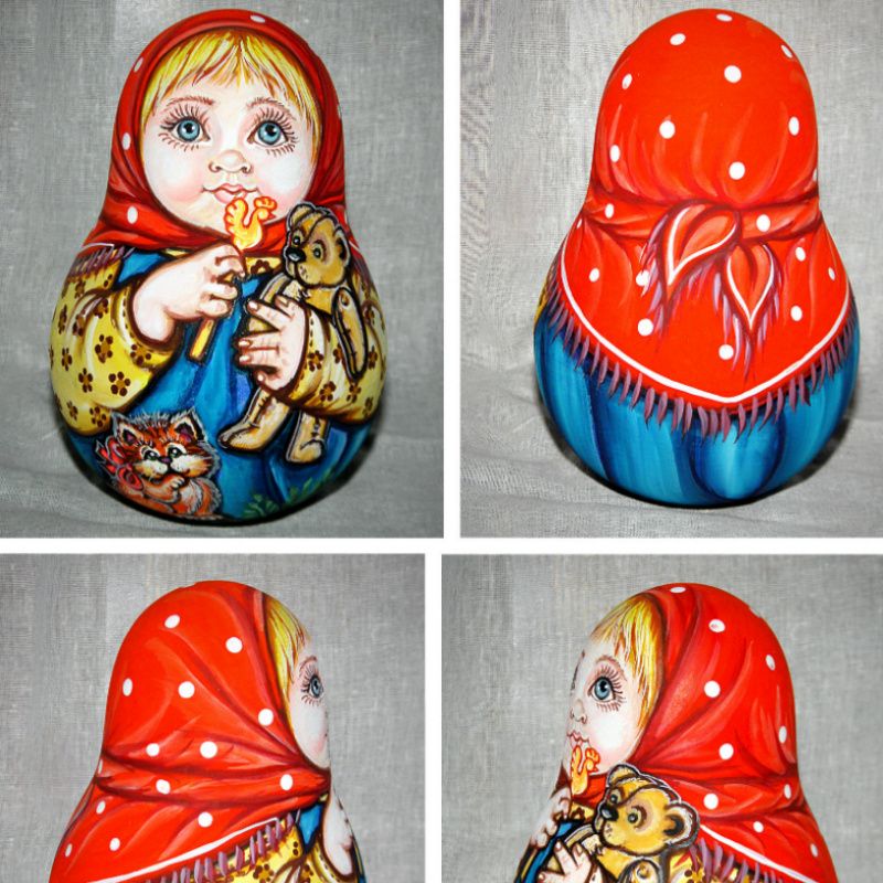 Музична іграшка-неваляшка. Висота 14,5 см, дерево (липа). Розписана акварельними фарбами і гуашшю, покрита декількома шарами лаку алкіду.