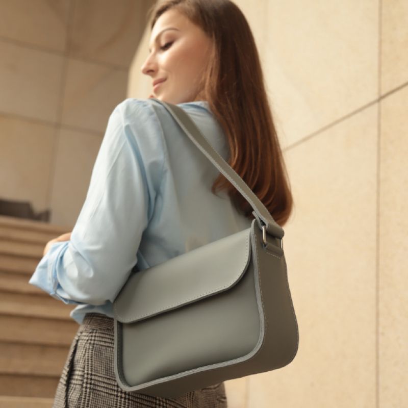 Жіноча Шкіряна Сумка "Багет XL" Шкіра Гранд, колір Сірий