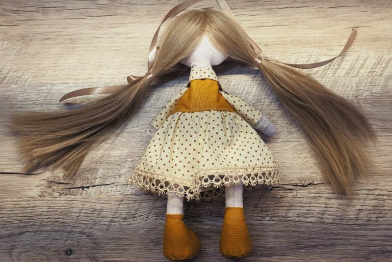 Лялька ручної роботи. Одяг не знімається. Волосся - штучні Треси.