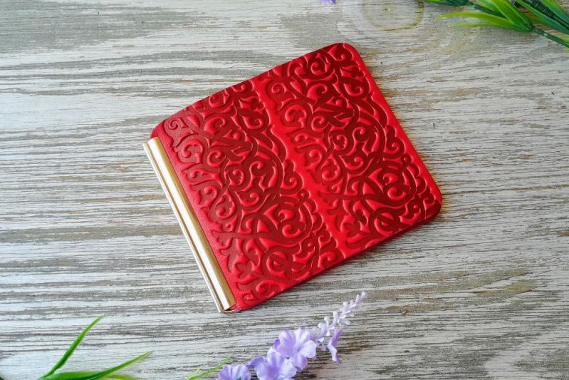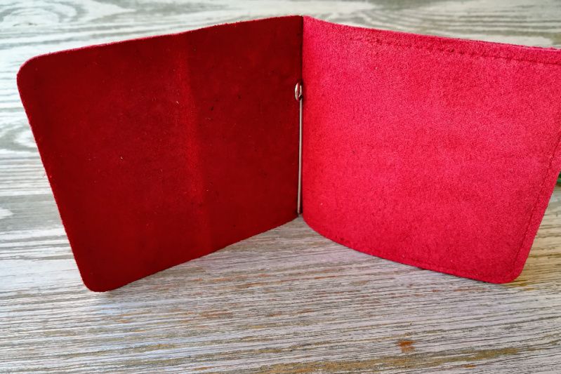 Затиск для грошей з 100% шкіри. Міцний механізм для тримання купюр. Ідеально підходить для всіх номіналів гривні і долара. Ззаду є зручний кишеньку для карток Розміри: 9,7 см х 8,7 см PS Подарункова упаковка для портмоне йде в подарунок