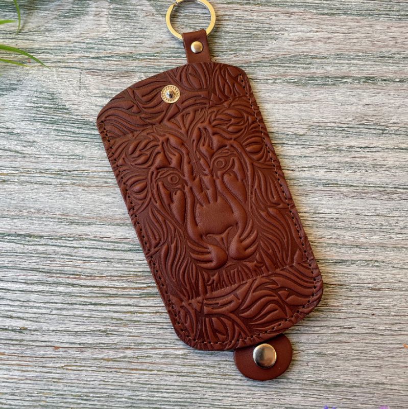 Ключниця – потрібний та корисний предмет, який дозволяє уникнути пошкоджень одягу та підкладки сумки. Це не кажучи вже про те, що купити ключницю - значить назавжди позбавитися необхідності шукати ключі довго. Ключниця виготовлена із натуральної цільної шкіри. Акуратна, компактна, зручна у користуванні. Малюнок виконаний за допомогою гарячого тиснення. Ключики одягаються на колечко і ховаються всередині, ключниця заривається на кнопку. Розмір: 13 см*7 см PS Подарункова упаковка для ключниці йде в подарунок