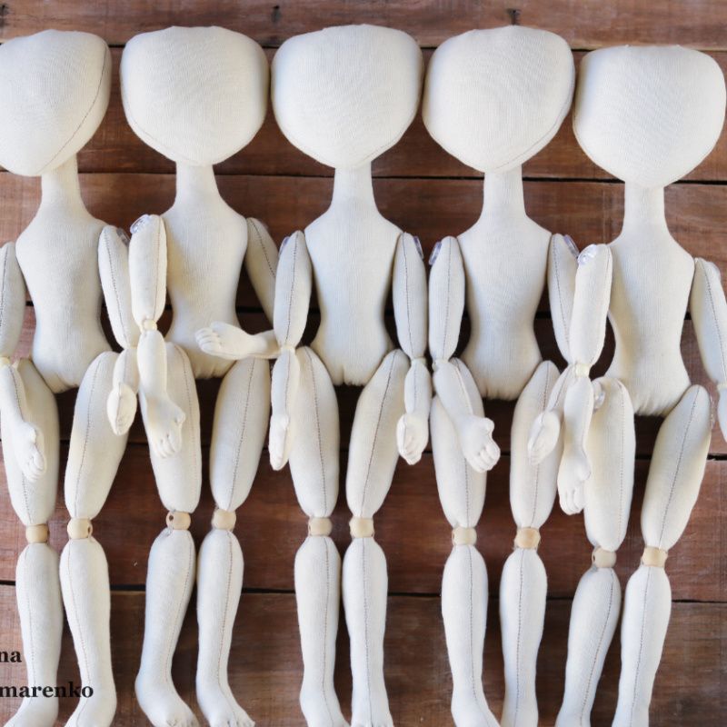 Текстильна лялька зростання 30-33 см. Тіло виготовлено з бавовни. Лялька може стояти з опорою і сидіти. самостійно. Лялька з тканини має шарнірне з'єднання в колінах і ліктях. Ця заготовка буде цікава тим, хто не може зробити лялькове тіло. Ціна вказана за одну ляльку.
