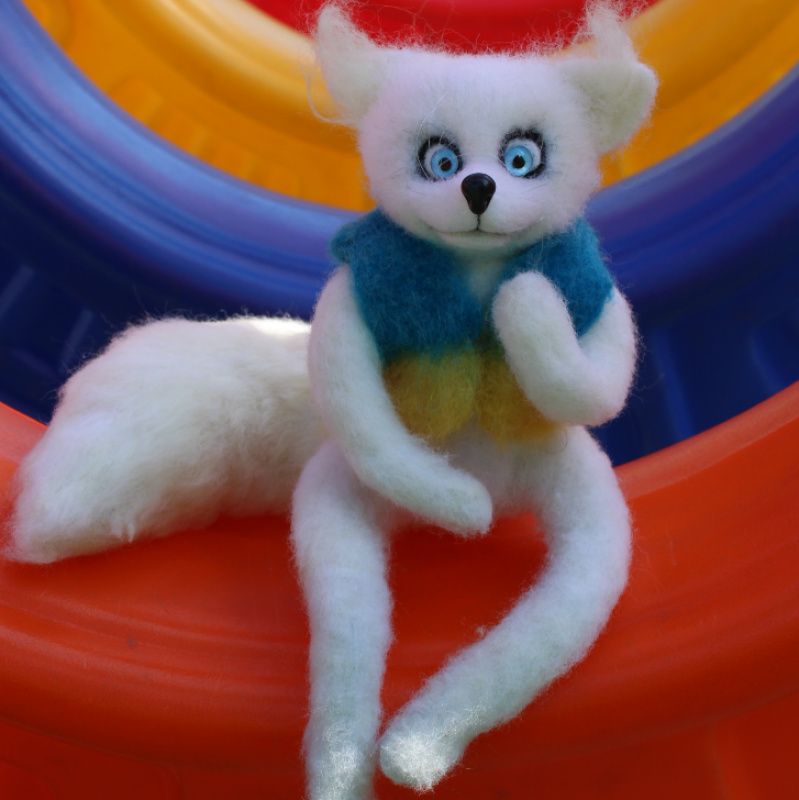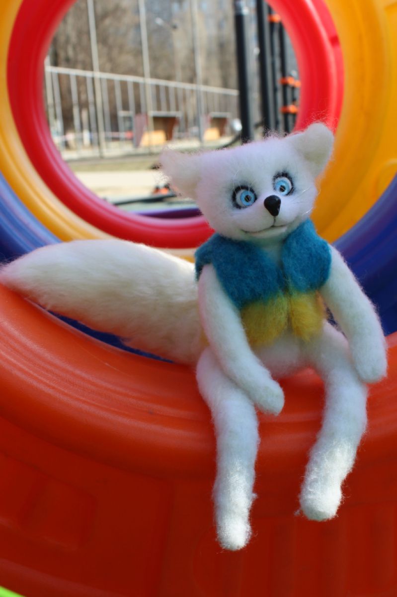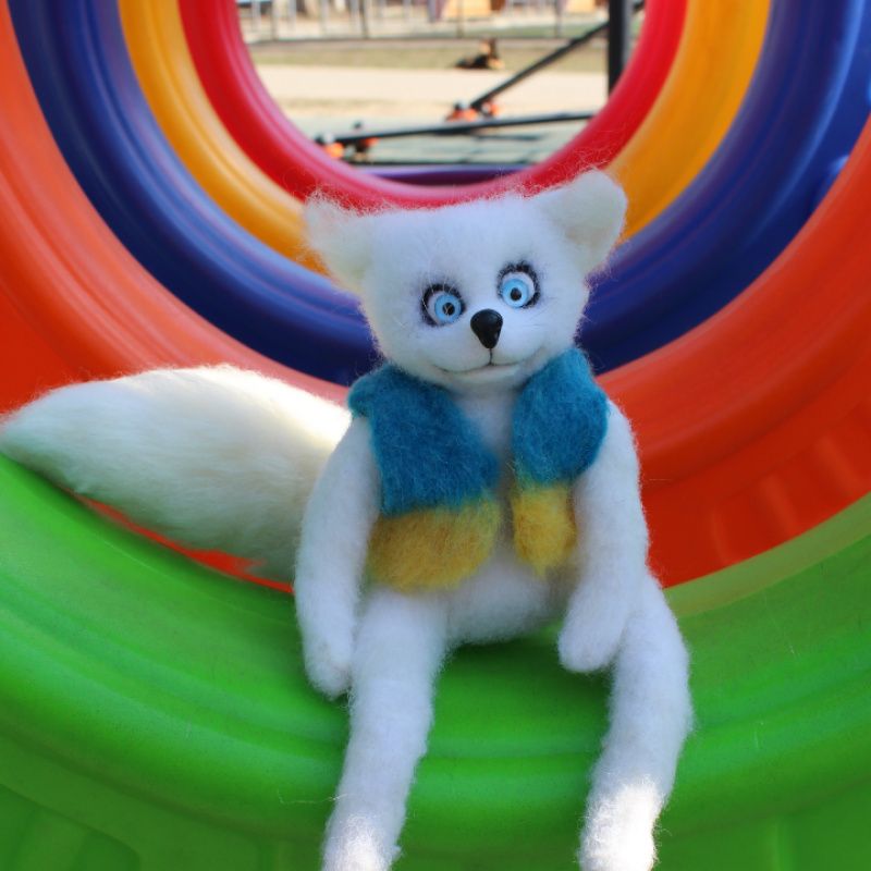 Білий Лис Сніжний валяний із вовни повстяний ручної роботи! Наш Український Патріотичний Лис Перемоги. Символ миру та незламної волі нашого народу! Все буде Україна! Виконаний з натуральної вовни методом сухого валяння! Висота 20 см (голова + тулуб, без урахування задніх лап, + 22 см хвіст!). На дротяному каркасі має рухливість і можна приймати різну позу, тим самим міняти настоювання лисиця. Позитивна інтер'єрна іграшка, виконана з любов'ю та душею! felting_pets Дивіться й інші мої оголошення зі звірятами та птахами, натиснувши на аватарку (показує всі мої роботи), ви обов'язково знайдете собі до душі улюбленця, який радуватиме вас багато років! Оплата 100% на картку або безпечне придбання. Накладний платіж не передбачено! Товар поверненню не підлягає.