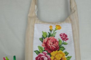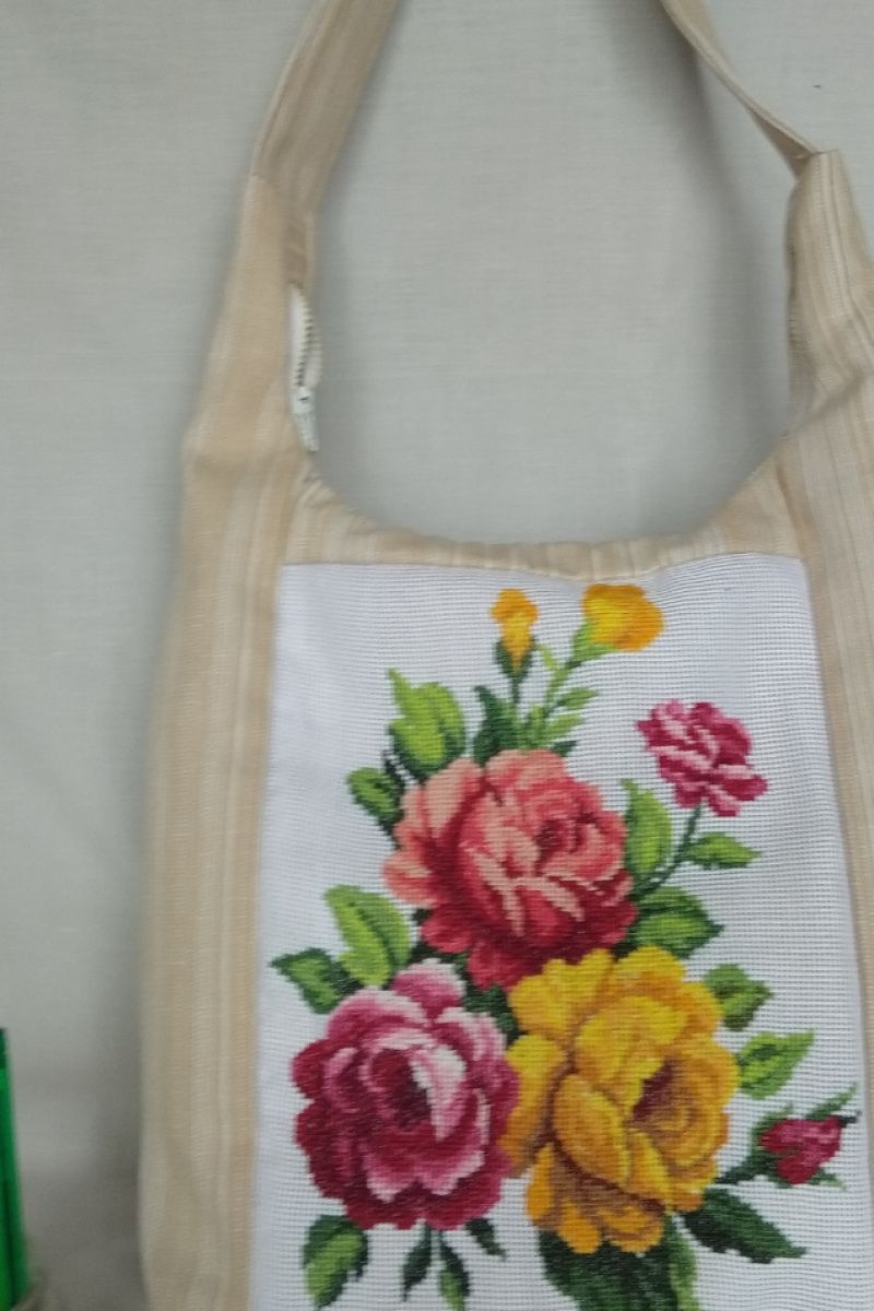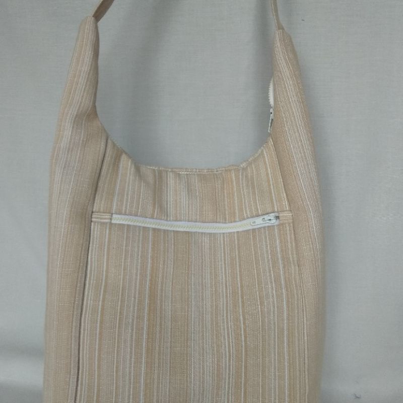Сумочках-торба ручної роботи на блискавці із щільної тканини, додатково проклеєна дублерином, ззаду кишеня на блискавці, всередині накладна кишеня, підкладка бавовна, довжина ручки 43 см