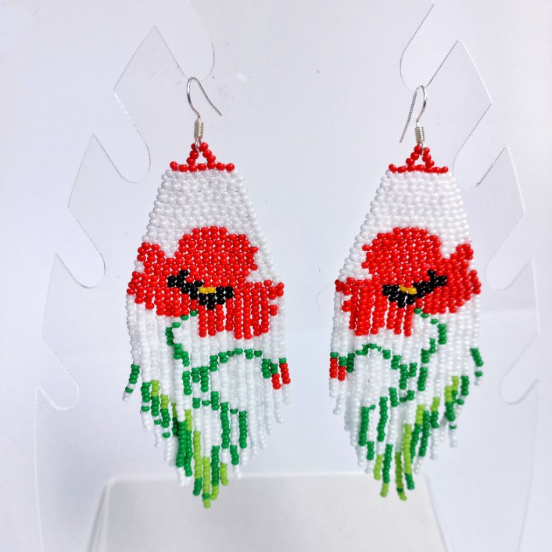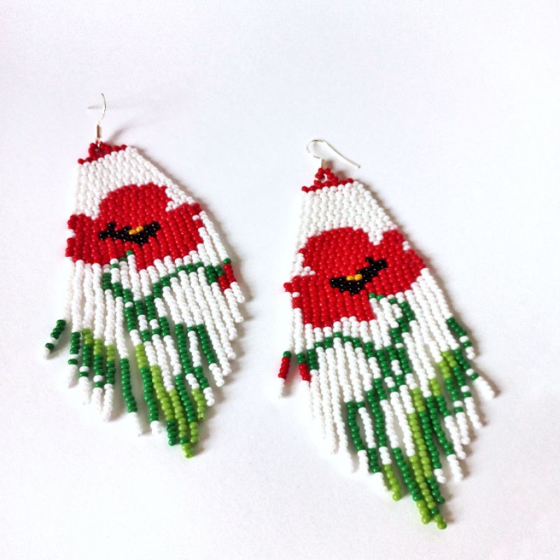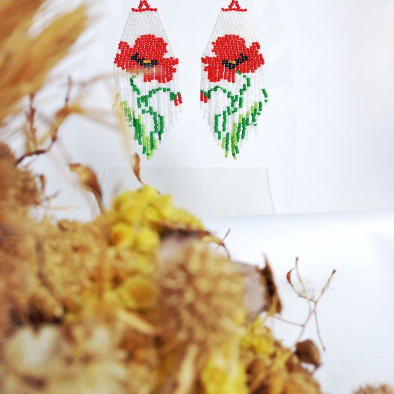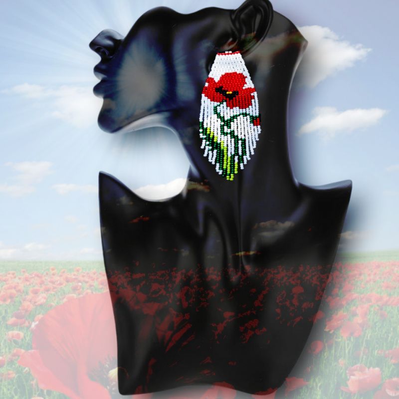 сережки в стилі бохо з орнаментом мак. ручна робота, довжина зі швенза 11,5 см, ширина широкої частини 4 см. швенза стерлінгове срібло