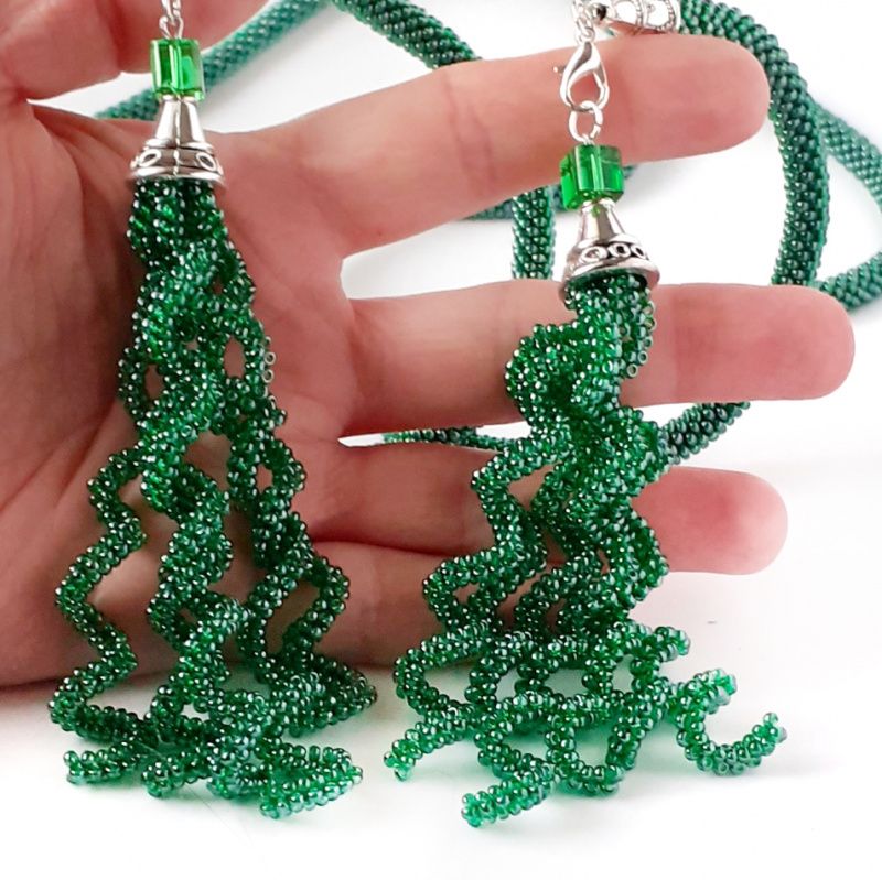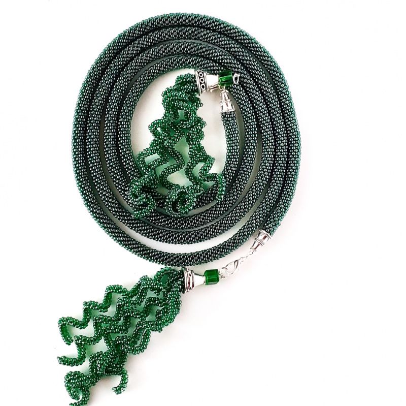 Лариат пов'язаний гачком з чеського бісеру. довжина Лариат без підвіски 1,3 м. Довжина підвісок близько 12 см