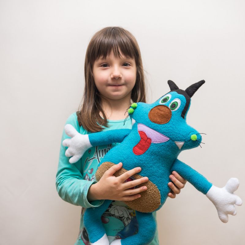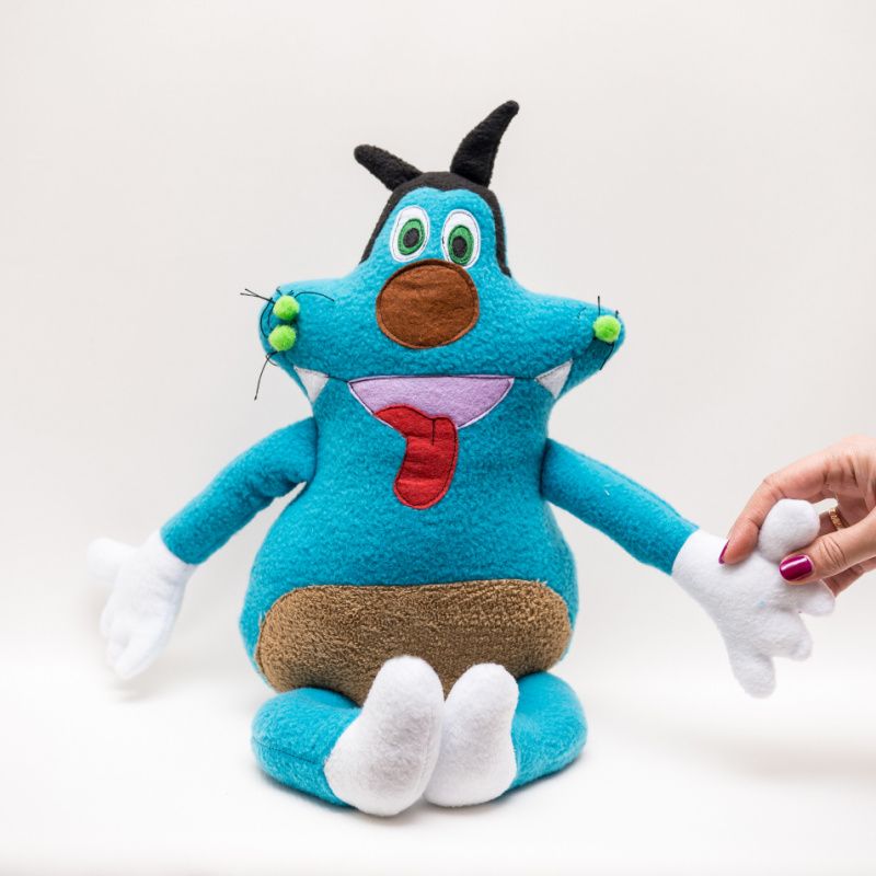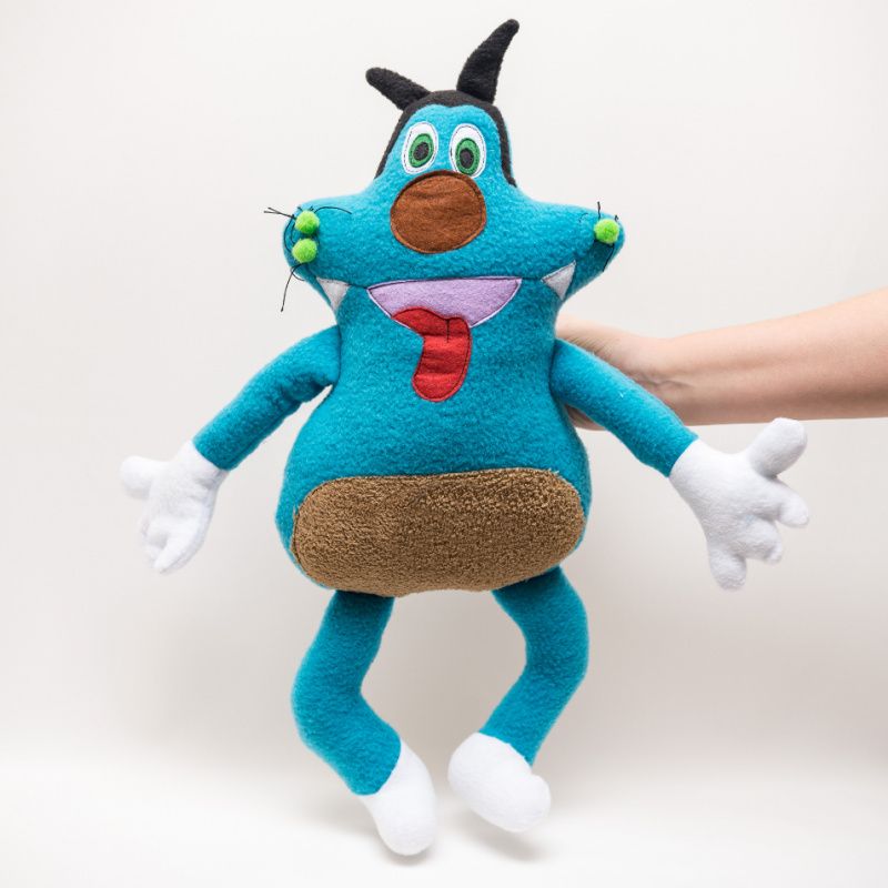 Герої з мультфільму "Оггі та кукарачі" - кіт, Оггі, який живе в двоповерховому будинку в передмісті, любить спокій і вважає за краще проводити час на м'якому пуфику перед телевізором, поглинаючи смачну їжу. А таргани псують йому життя. Забавні іграшки, які припадуть до смаку всім діткам! Яскрава, м'яка і оригінальна! Размерот 20 см і до 40 см. Фліс і холофайбер.