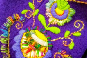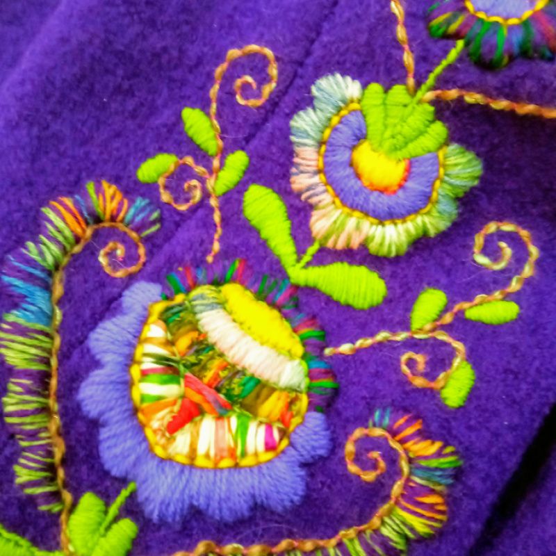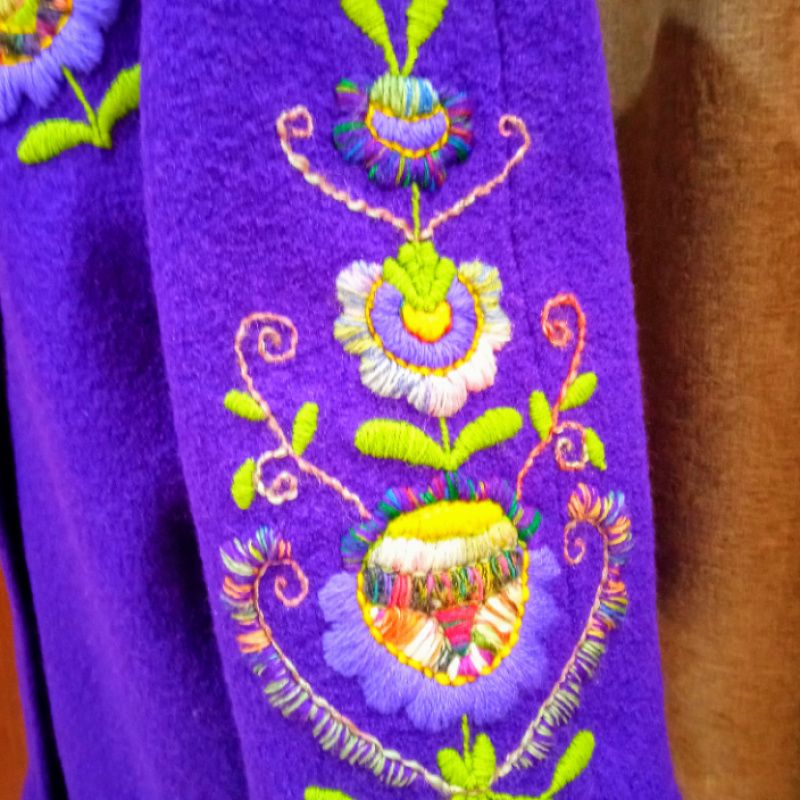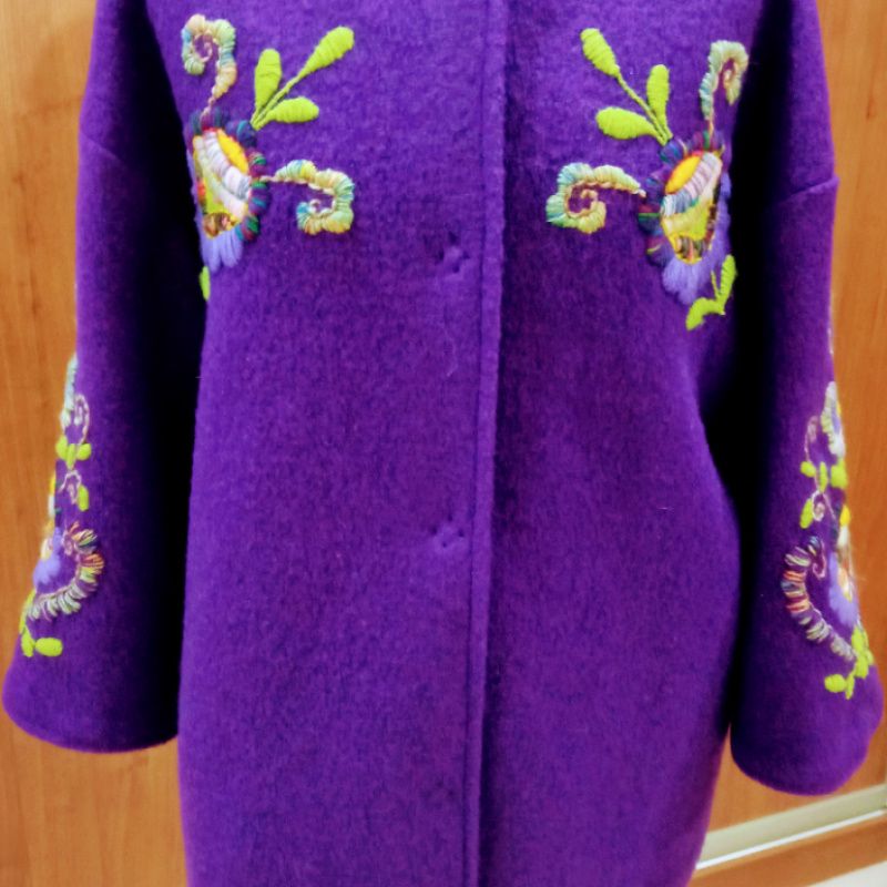 Жакет жіночий з об'ємною вишивкою гладдю в комплекті з взуттям ручної роботи.