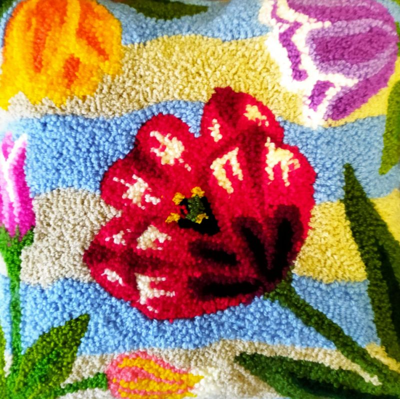 Гобелен "Тюльпани" і дві диванні подушки (35*35), виконані у техніці вишивка петлею (нетканий гобелен). Об'ємна фактура і яскраві кольори створять оригінальність вашого інтер'єру і додадуть позитивних емоцій.