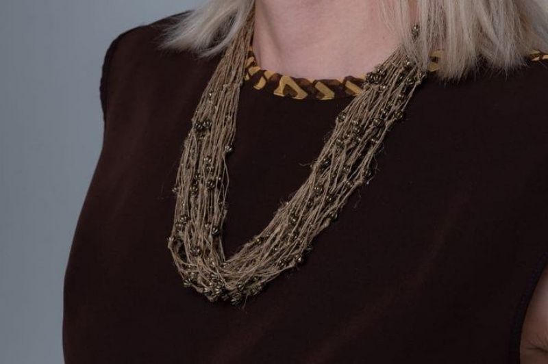 Кольє з старовинної лляної нитки тканої вручну та металевих намистин.