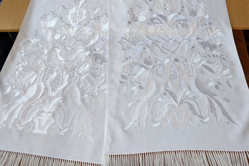 До вашої уваги не зовсім поширений, але надзвичайно витончений та символічний весільний рушник. В чому його символічність? - запитаєти ви. Символічний цей рушник тому, що його орнаментом є потужній та давній весільний оберіг - Дерево життя. Дерево Життя - наймогутніший сакральний символ, використання якого у весільній вишивці несе дуже сильне смислове навантаження. Значення його в тому, що все живе у світі - це частина великої нерозривної системи буття.