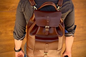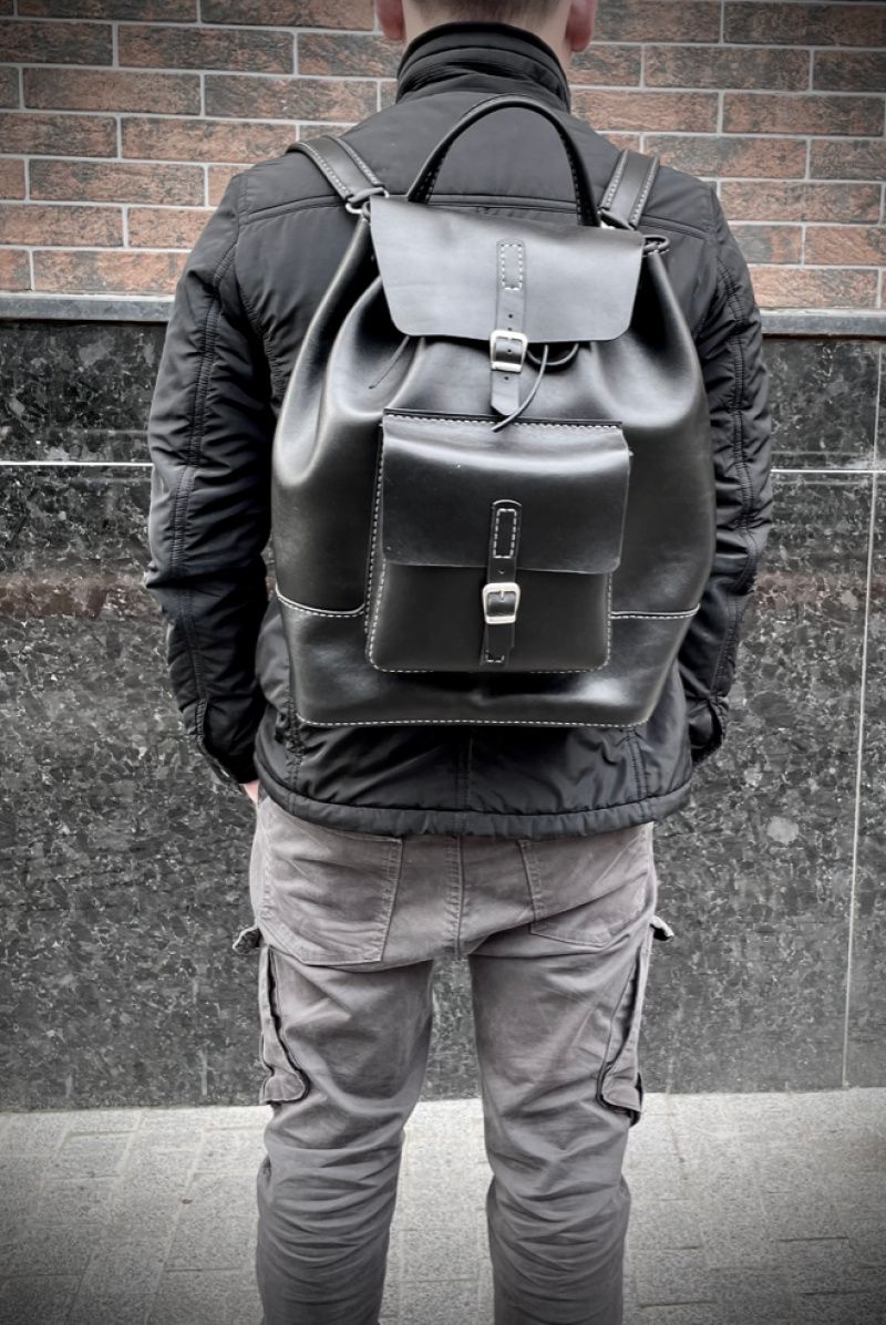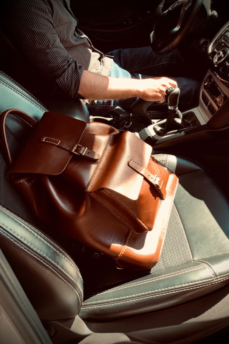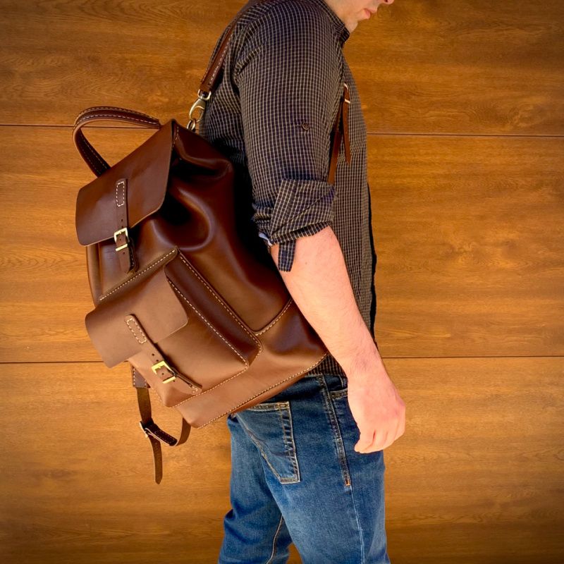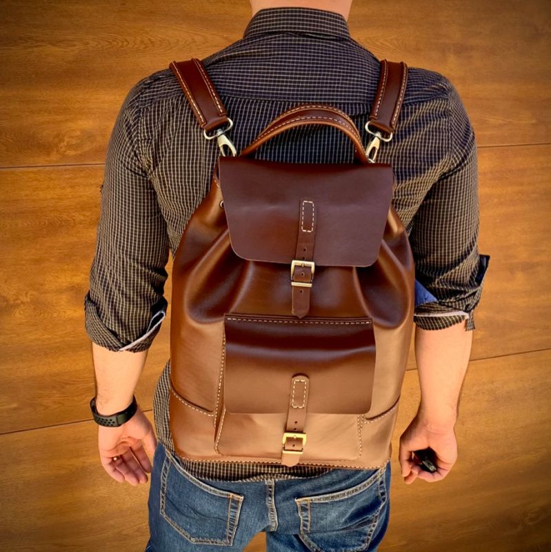 Шкіряний рюкзак з натуральної шкіри товщиною 2.4 мм. Повністю ручна робота. Колір шкіри - коньяк. Якісна фурнітура. Можливе виготовлення на замовлення іншого кольору.