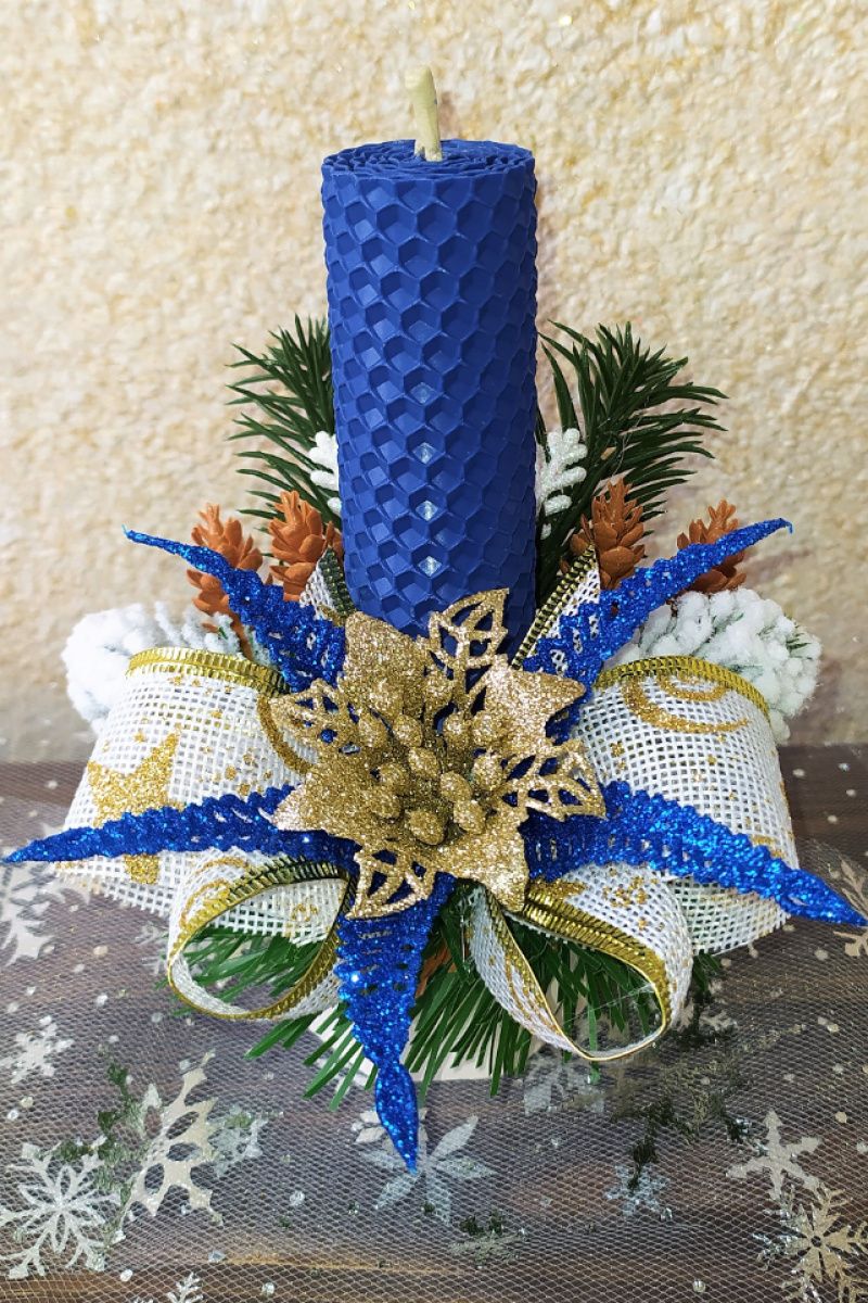 НОВОРІЧНА КОМПОЗИЦІЯ ЗІ СВІЧКОЮ З ВОЩИНИ (05)