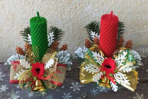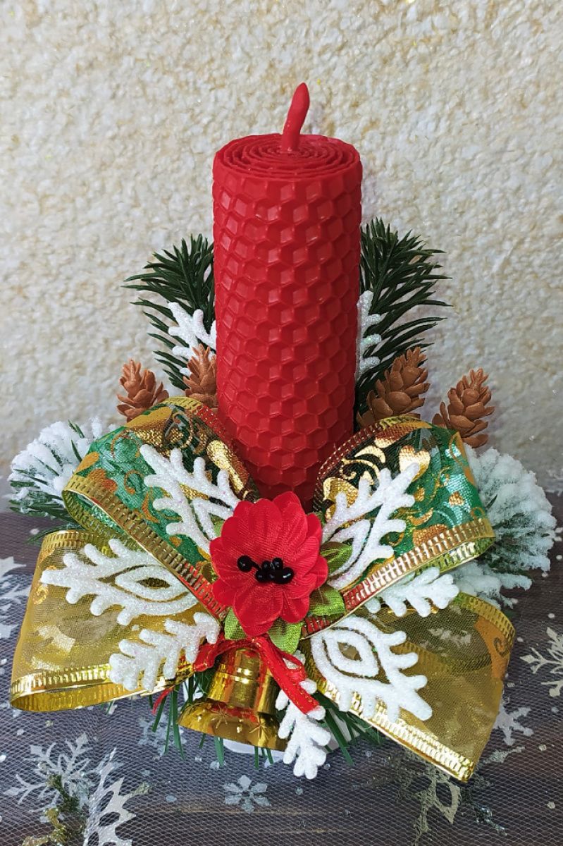 НОВОРІЧНА КОМПОЗИЦІЯ ЗІ СВІЧКОЮ З ВОЩИНИ (06)