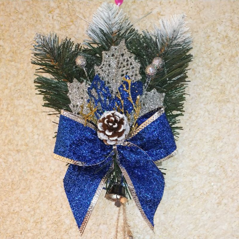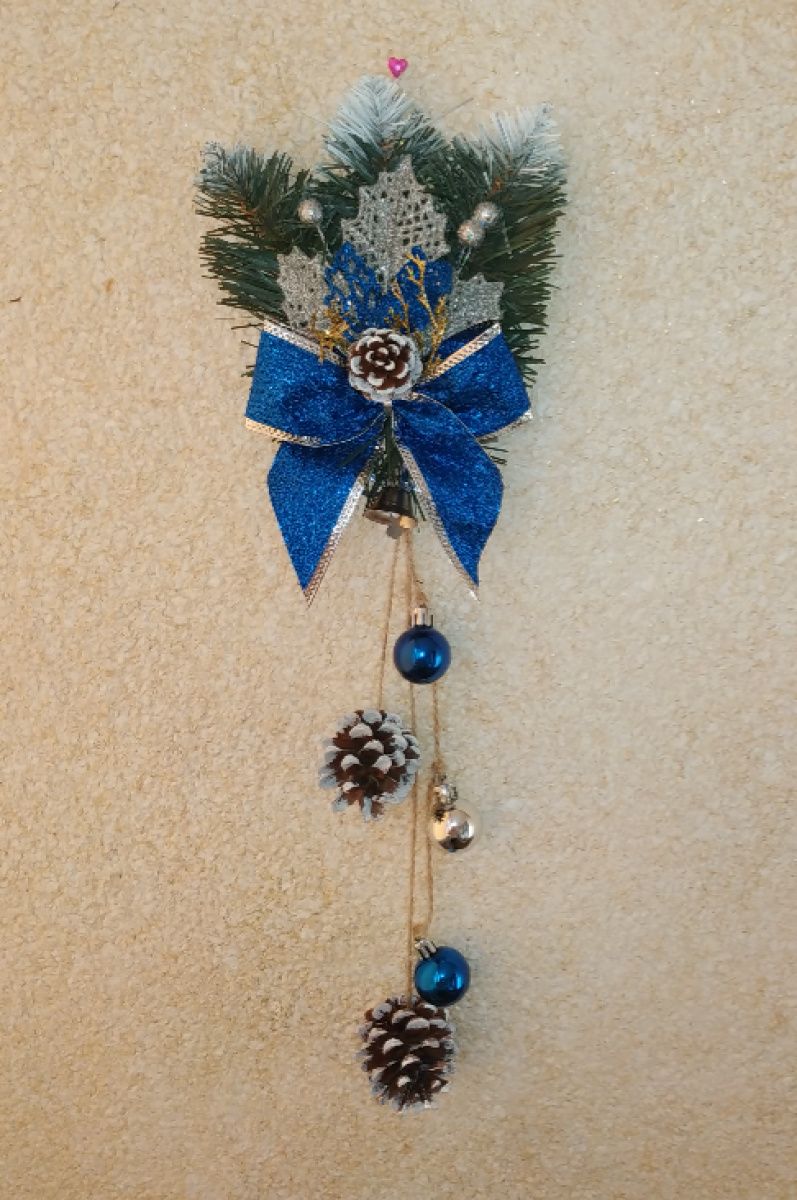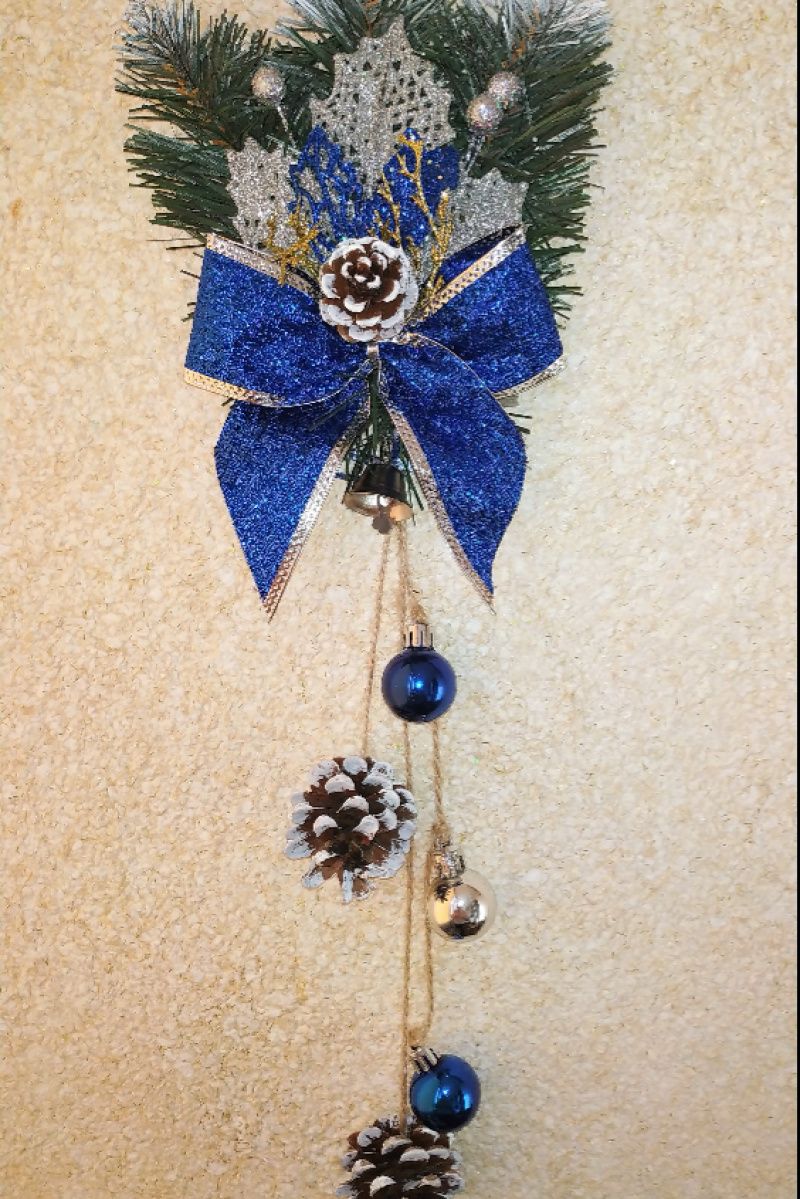 Оригінальна підвіска прикрашеного бантом зі святковим орнаментом - відмінний варіант новорічного декору для себе або в подарунок близьким людям. Новорічне прикраса можна повісити як на двері так і на стіну - 17 см основного елемента (30см по діагоналі), 45см загальна довжина. Чудово підійдуть такі іграшки для новорічного декору в класичному стилі, в стилі еко, Прованс і інших. Спосіб кріплення - петелька.