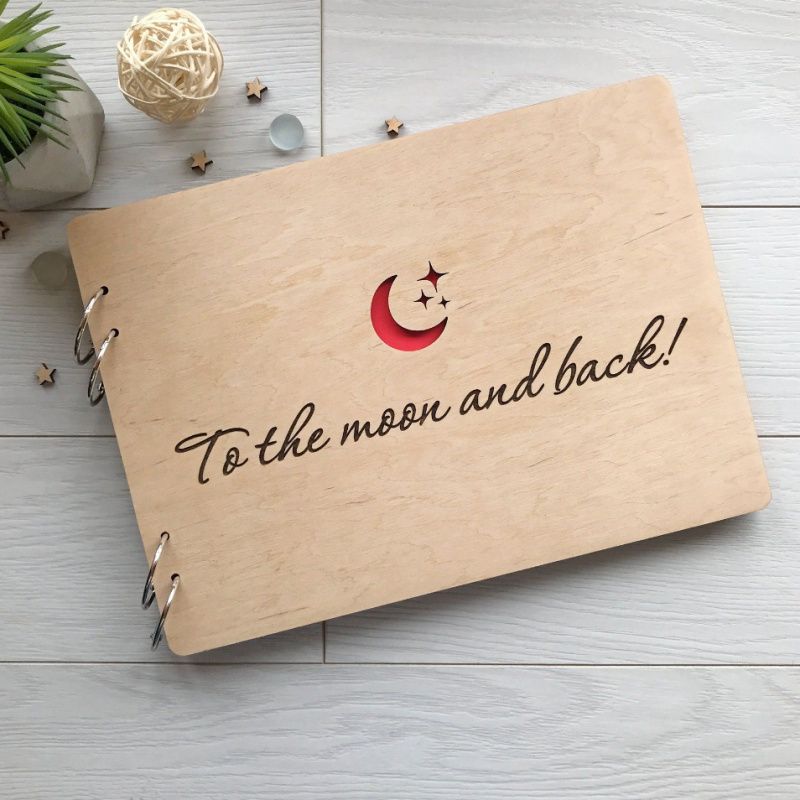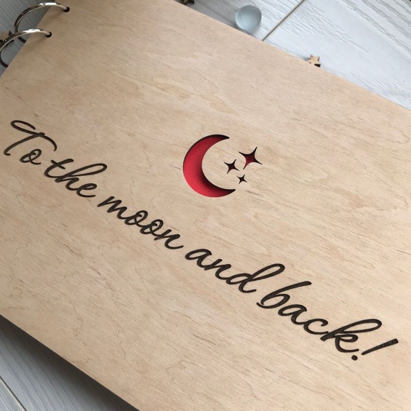 Дерев'яний альбом для фото і записів «До місяця і назад»