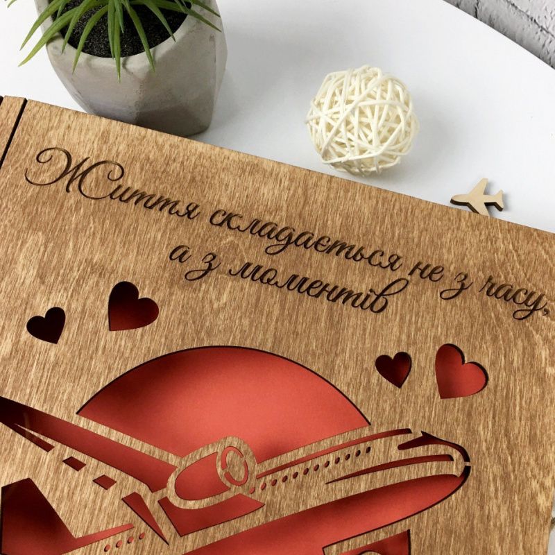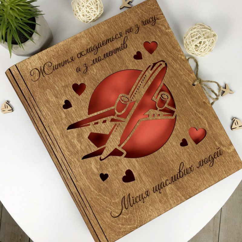 Дерев`яний фотоальбом з гравіюванням для любителів подорожувати