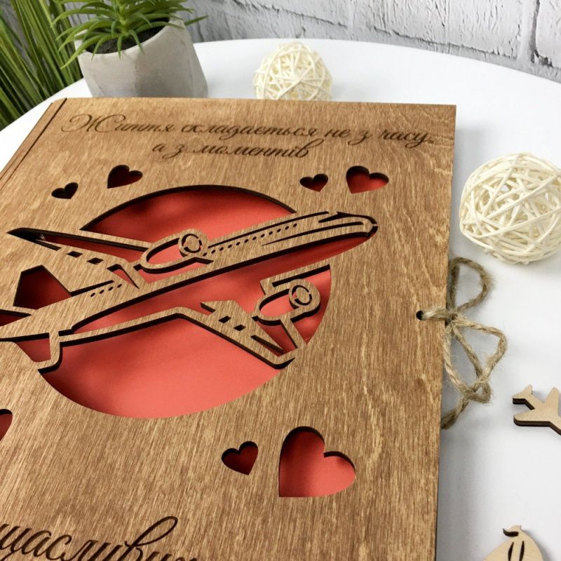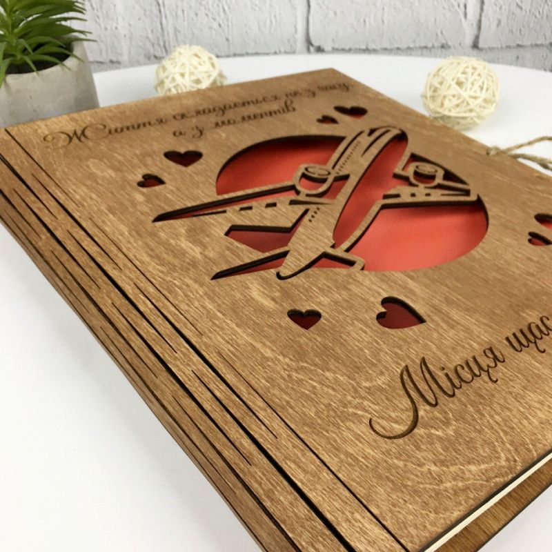 Любите подорожувати? А скільки ж крутих фотографій кожен раз виходить. Пропонуємо Вам створити свій неповторний альбом мандрівника. У нас Ви можете замовити незвичайний альбом для фотографій і записів в дерев'яній обкладинці з гравіюванням на замовлення. За Вашим бажанням ми нанесемо на обкладинку альбому з дерева Вашу улюблену цитату, назву країн, міст або все, що Ви побажаєте, зробивши альбом ручної роботи унікальним і неповторним.