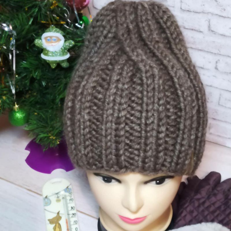 Зимова напіввовняна шапка із об'ємної пряжі.
