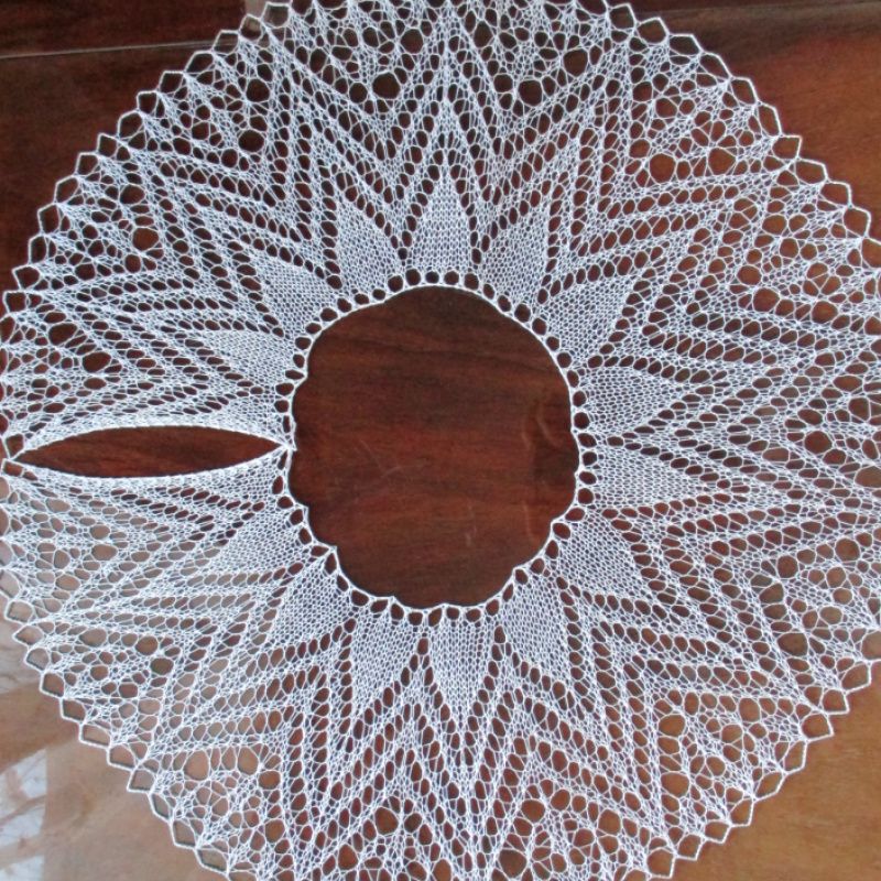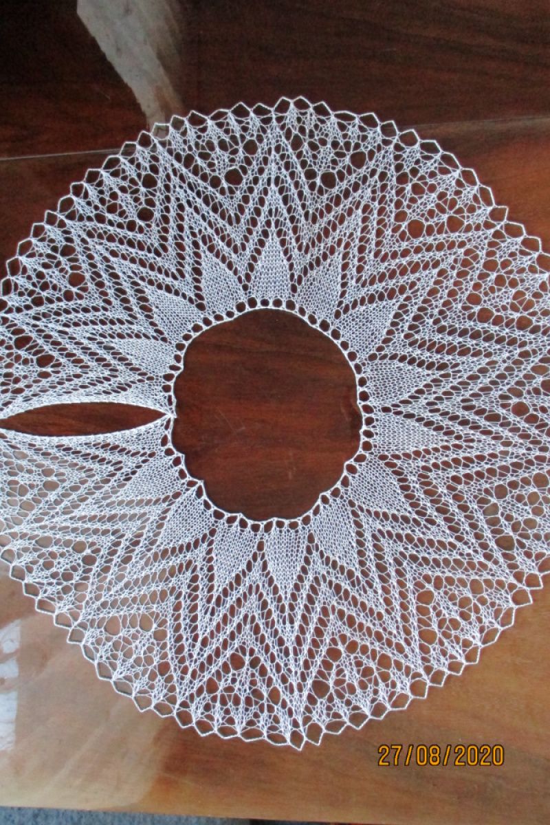 Комір білого кольору пов'язаний спицями з 100% бавовни. Жорстко накрахмален. Ширина 12 см.