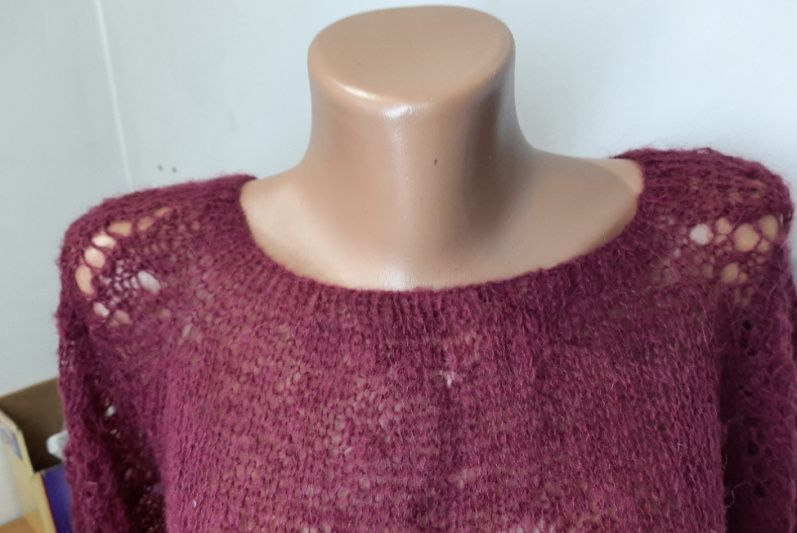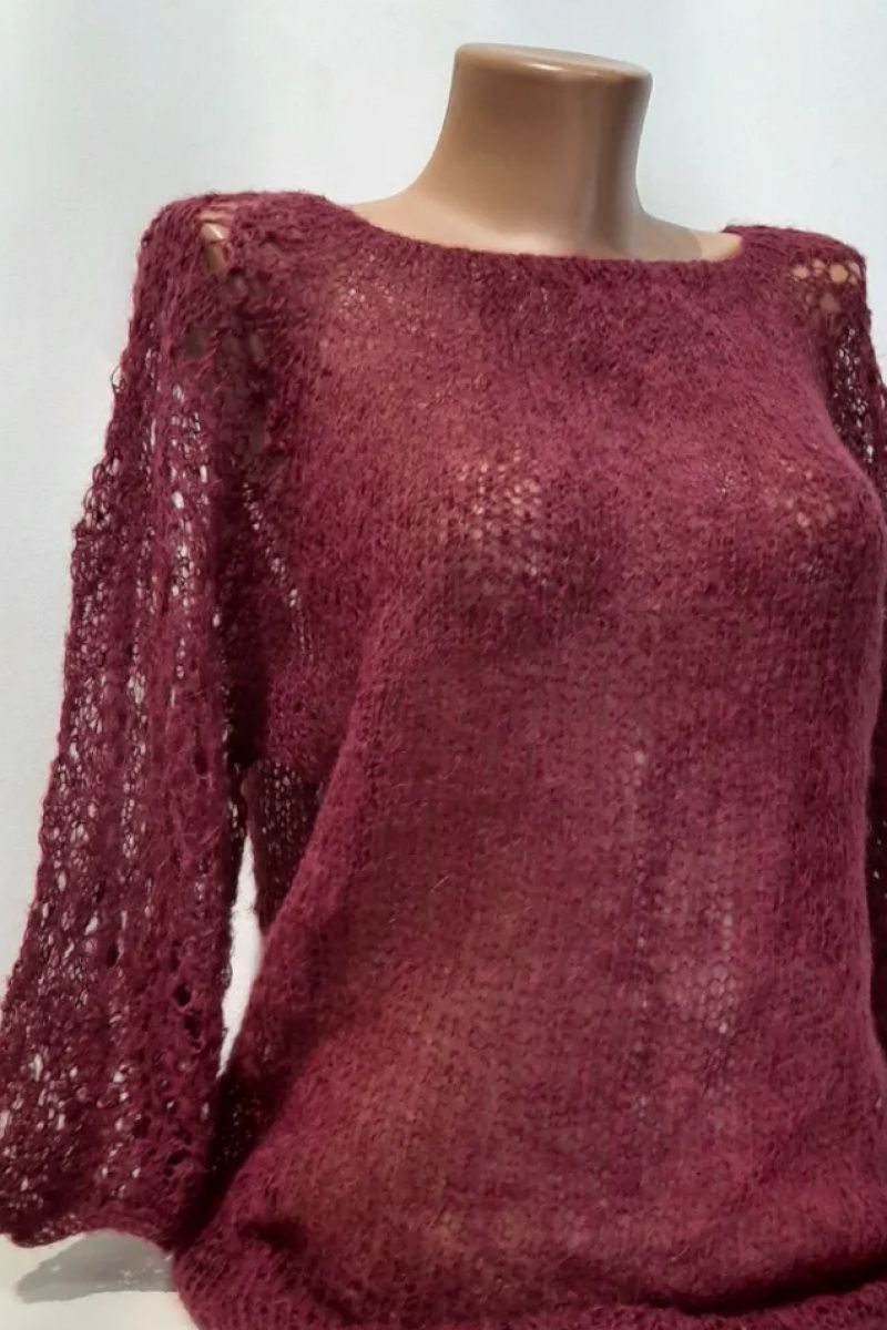 Паутинка із кід мохеру гарного бортового кольору відтінку божоле. Рукав ажурний , довжина 3/4.