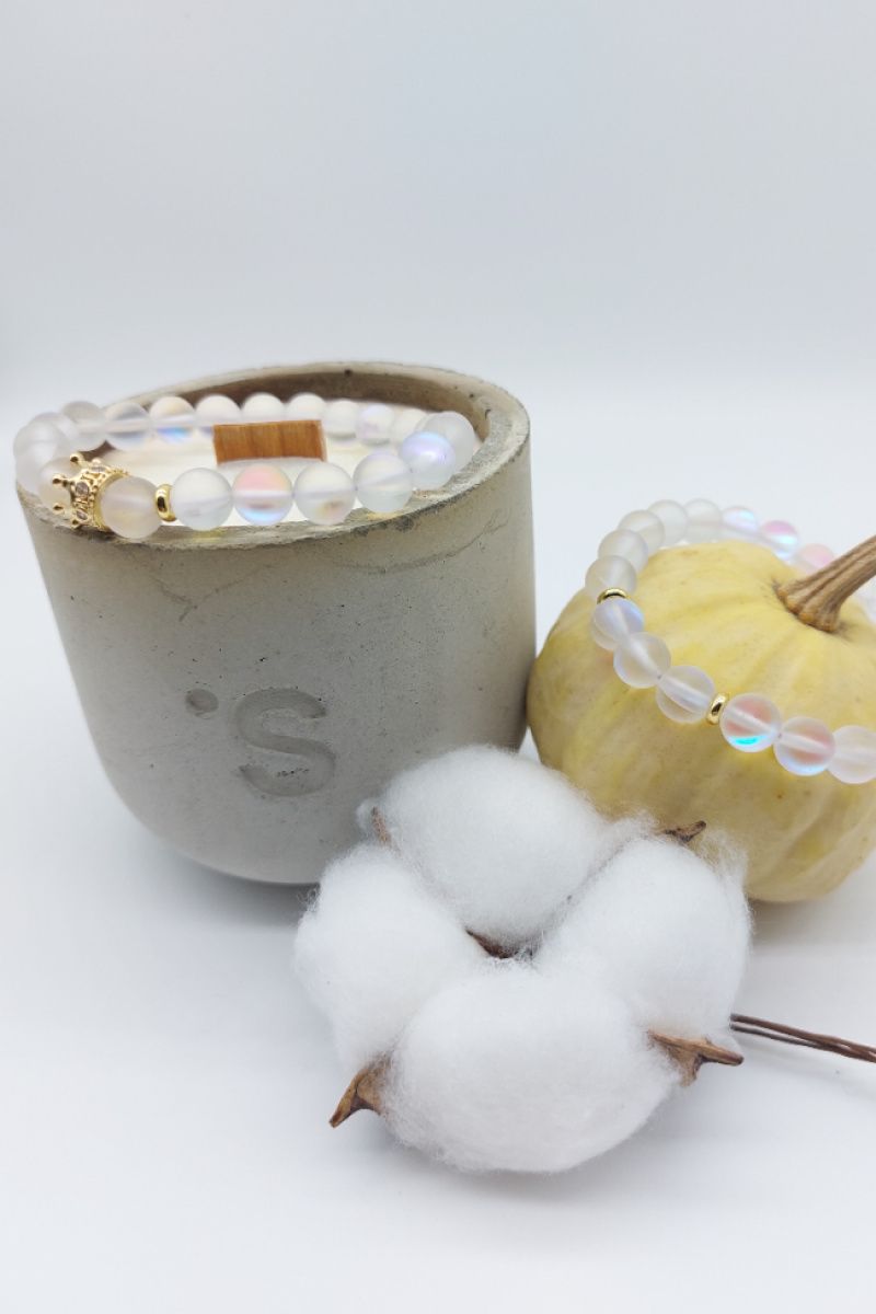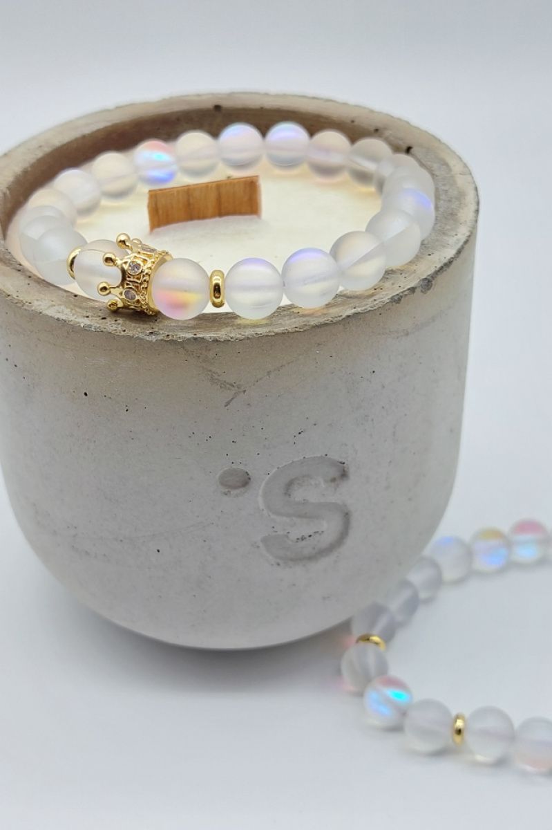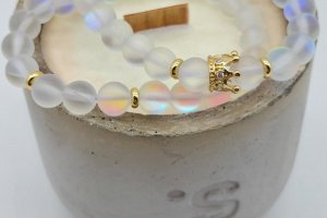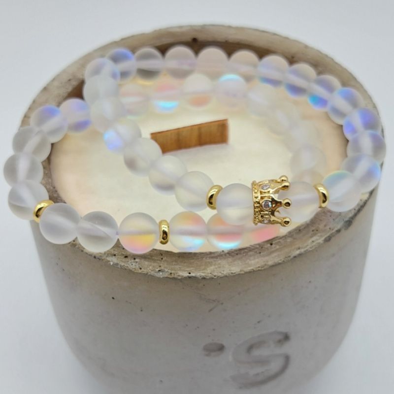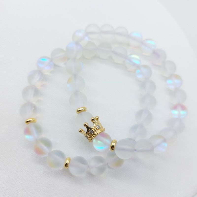 Парні браслети з опалового скла 8мм з використанням гіппоалергенної фурнітури інкрустованої фіанітами