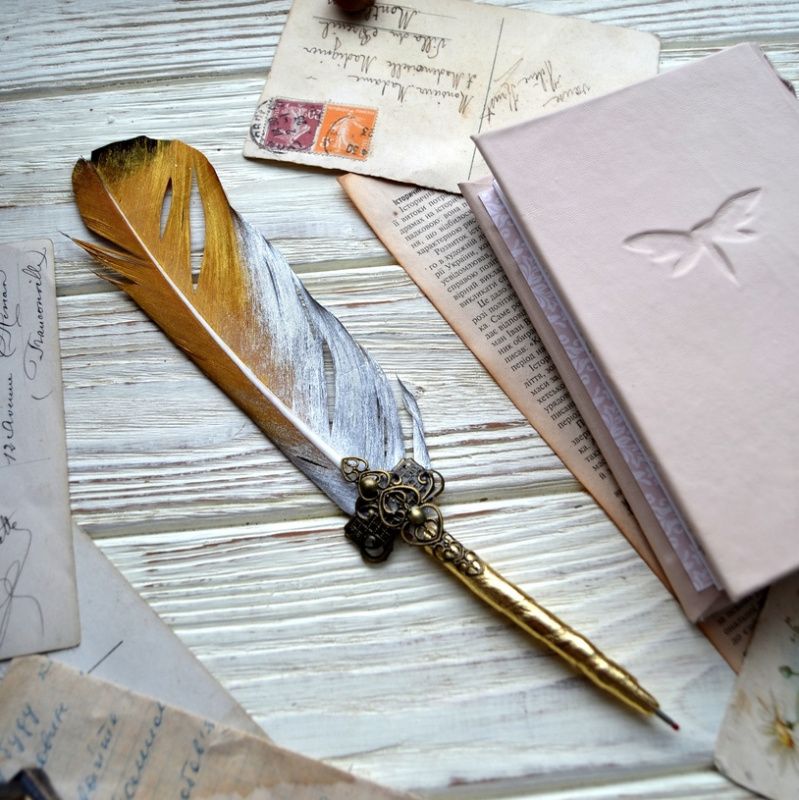"Металевий квітка" 26.3см Кулькова ручка зі змінним зарядом. Не залишить байдужим і шанувальників книг і мрійників. Вона-частинка чарівного в повсякденному житті. Матеріали: фарбоване перо гусака, шкірозамінник, кульковий заряд, металева фурнітура.