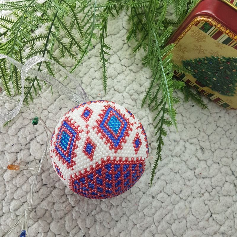 НОВОРІЧНА КУЛЯ З БІСЕРА "РОМБИ" 2 ПРИКРАШЕННЯ НА Ялинку