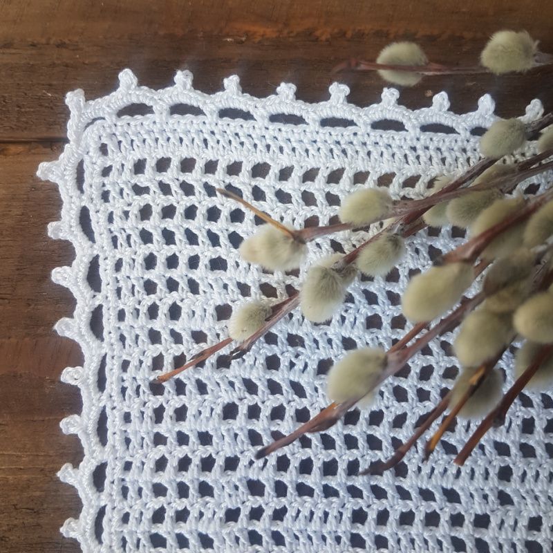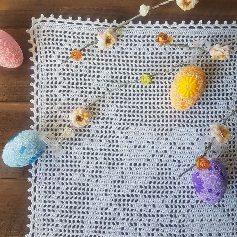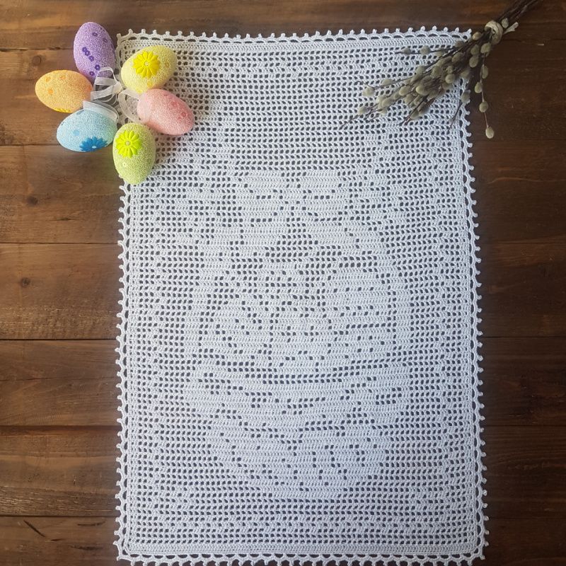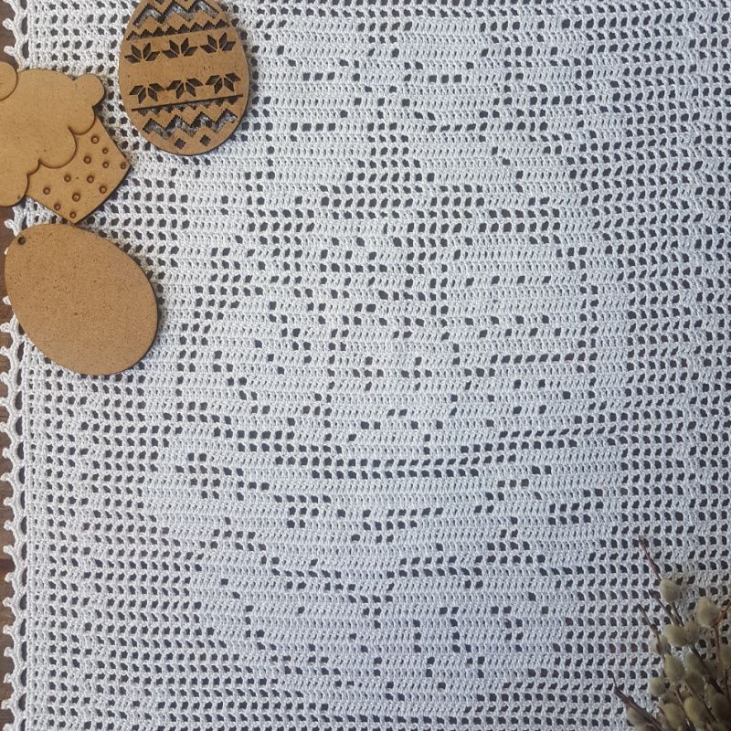 Пасхальна серветка-рушник, в'язана гачком стане чудовою прикрасою на Великдень і прослужить довгі роки. Також ця серветка може стати прекрасним подарунком рідним і близьким. Серветка пов'язана гачком в філейної техніці, бавовняної пряжею білого кольору. Подаруйте собі красиве свято Материали: 100% бавовна Розміри: 53 * 36