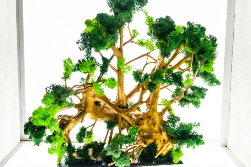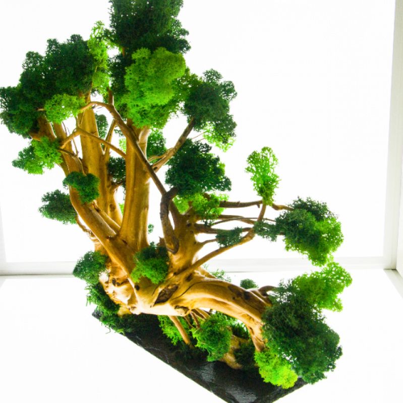 Хочете мати щось ексклюзивне .... єдине і неповторне ... яскраве? Якщо ви не любите нескінченно доглядати рослини, тоді такий ДЕРЕВО зі скандинавського стабілізованого моху вам напевно сподобається. Не треба поливати. Світло теж не потрібне. Озеленення без горщиків та бруду! Незвичайний подарунок, оригінальний у декорі інтер'єру. Тепер Ви можете дозволити собі таку красу у себе вдома чи в офісі! Бонсай з моху: Висота - 40 см Стовбур виконаний з кореня дерева, очищений від кори, оброблений просоченням та поліуретановим лаком. Підставка виготовлена з кераміки. Всі поверхні оброблені водовідштовхувальним просоченням. Ніжки виконані з повсті для збереження поверхні від пошкоджень. Ексклюзивний елемент будь-якого інтер'єру Інноваційна технологія архітектурного ювелірного бетону Оригінальний дизайн: натурально, екологічно, ручна робота. Вища якість матеріалу Не потрібно поливати; Може жити без сонця; Не потребує догляду; Свіжість 8-10 років.