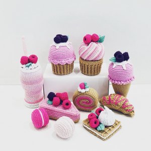 Тут ви знайдете цікаві і унікальні іграшки ручної роботи у вигляді їжі. З ними ваше маленьке щастя із задоволенням бавитиметься, запросить на чаювання, відкриє кондитерську чи пекарню. Іграшки для дітей віком від 3 років. Термін виконання замовлення від 2 до 4 днів.